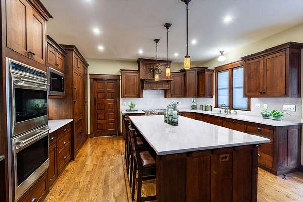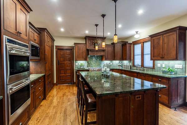 - Dishwasher, Disposal, Double Oven, Gas Range, Hard Surface Counters, Microwave, Refrigerator