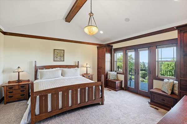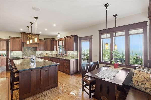Perched at the top of gated Broadmoor Estates, this stunning Paras built home is a timeless blend of craftsmanship and natural beauty. The community offers over 135 acres with miles of private trails that link directly to the 500+ acres of the Dishman Hills Conservation Area-right outside your door. The kitchen is a masterpiece in itself with a built-in fridge and dishwasher, spacious island, wet bar, coffee bar, and eating nook. The primary suite features a private deck, a soaking tub, walk-in shower, and spacious closet. Upstairs, you'll find a versatile bonus hobby room with closet, suitable for use as a fifth bedroom suite. The lower level is an entertainment haven, with 3BD/1BA, sauna, beautiful stone fireplace, and an exquisite wet bar with a wine fridge and ice maker. Step outside to the park-like setting and enjoy the presence of wildlife roaming and a handcrafted custom wrought iron fence to preserve the backyard oasis.