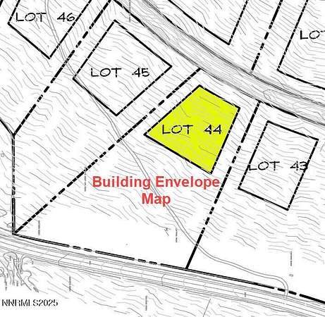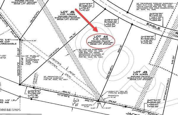5.48 acres, lot 44, has great views and is minimally sloped resulting in lower excavation costs. Sewer lift station required.