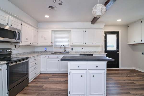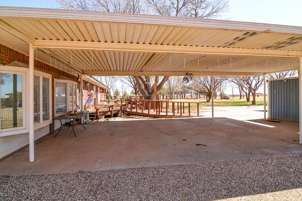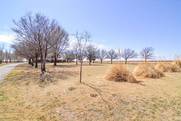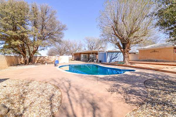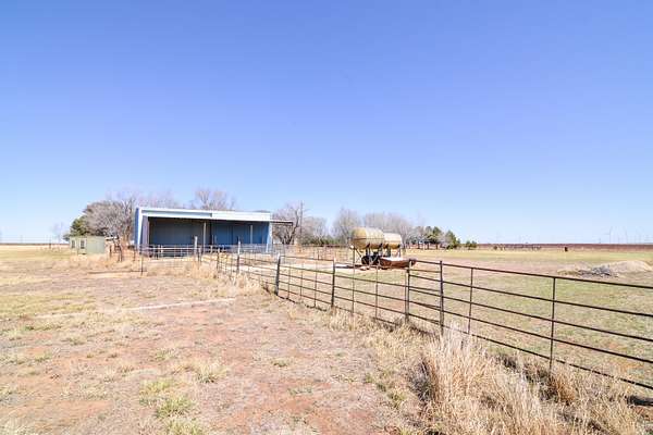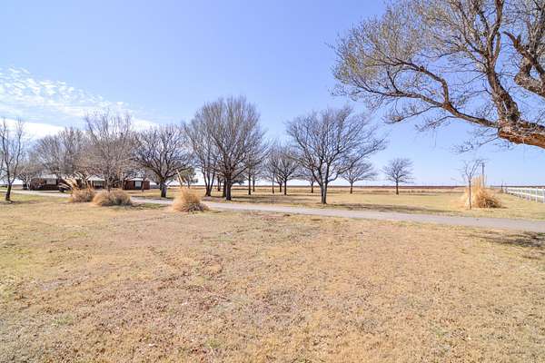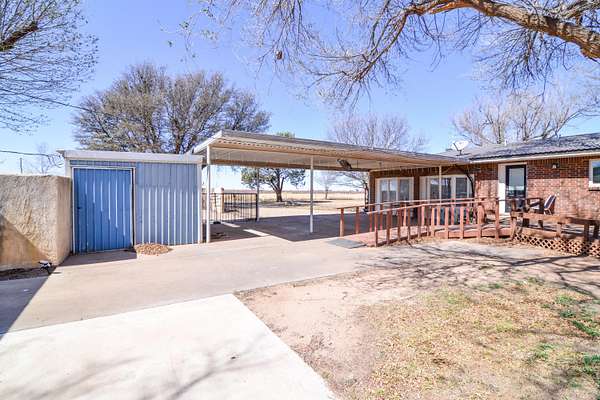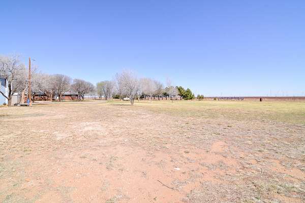 Set on just under 7 acres surrounded by farmland, this true farmhouse property offers peaceful country living with room to spread out. A tree-lined driveway leads to the home, tucked among mature trees that cover more than half the property. The land also includes a 3-acre pasture and wide-open views of West Texas sunrises and sunsets. The fully fenced in-ground pool was updated in 2024 with stamped concrete surrounding the pool, a new pump, full plumbing update, and a handicap pool lift chair. The pool area also includes a large deck for relaxing or outdoor dining, along with rock landscaping and artificial turf for easy maintenance. The property features a 30x50 ft shop with an attached lean-to and an in-ground hydraulic car lift, plus two additional outbuildings for storage, hobbies, office space, or crafts. Inside, the home offers a large open living and dining area. The primary bedroom includes two bay windows and a gas log fireplace. There are currently three bedrooms but it could easily be converted back to four by closing the wall between bedrooms two and three. The hall bathroom is handicap accessible with a walk-in tub added in 2024. A large back deck with a wheelchair-accessible ramp makes enjoying the outdoor space easy. If you've been looking for space, privacy, and room for projects, animals, or hobbies, this property is worth a look. Schedule your private showing to see it in person.
