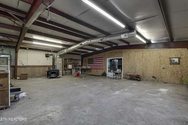 This property includes two large buildings ready for your ideas. The main 3,120-sq-ft metal-truss structure has an 800-sq-ft apartment with a kitchen. Water and electricity are in working order, and the building is equipped with an HVAC system—but the unit is not currently operational. The second structure is a barn-style building with concrete floors and stalls, ideal for storage, animals, or creative projects.