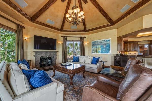 - Breakfast Bar, Cathedral Ceiling(s), Ceiling Fan(s), Chandelier, Coffered Ceiling(s), Double Vanity, Granite Counters, Multiple Living Areas