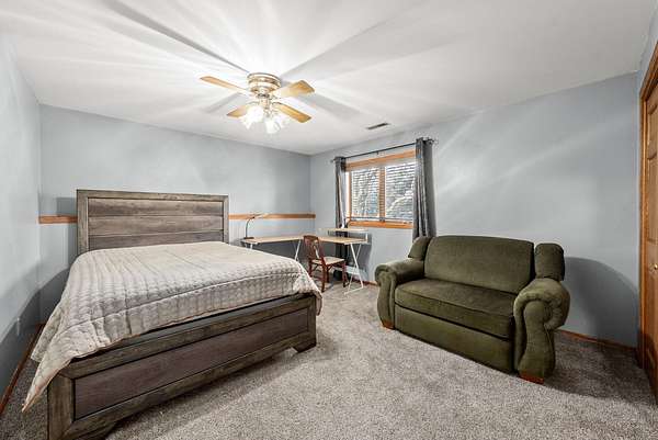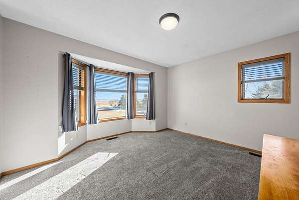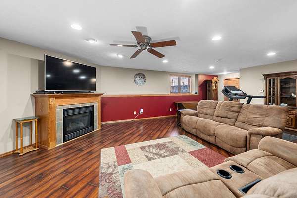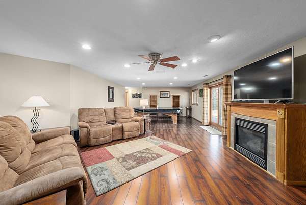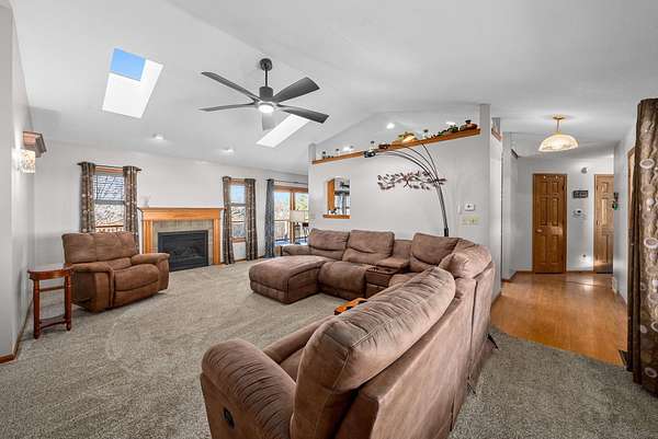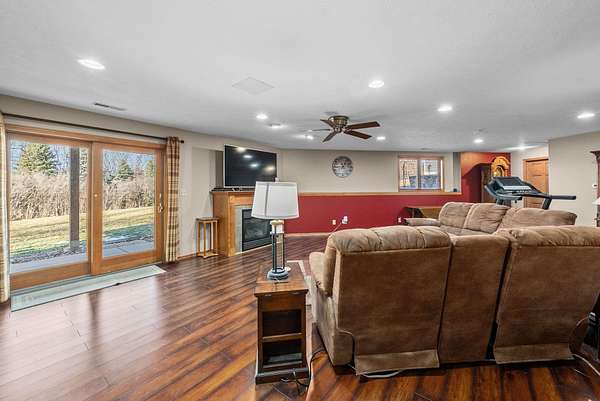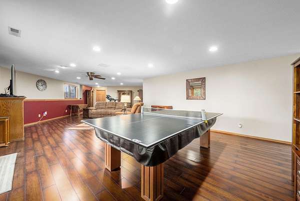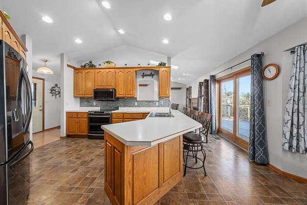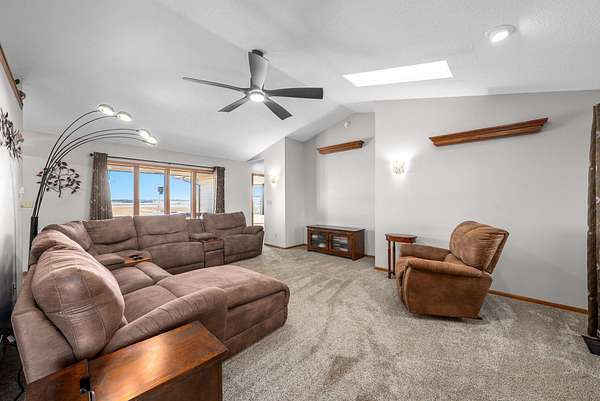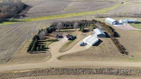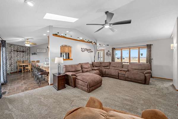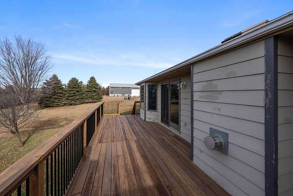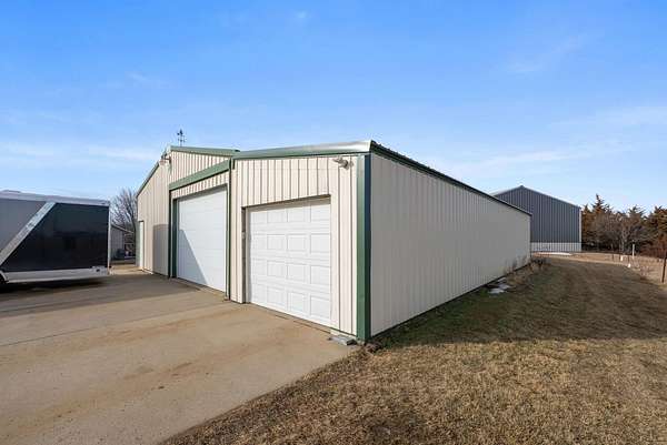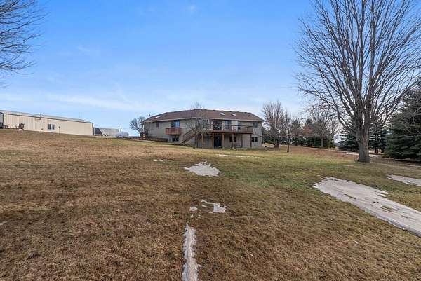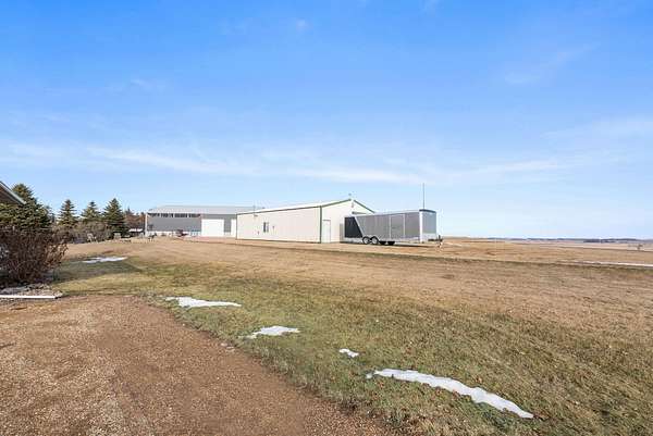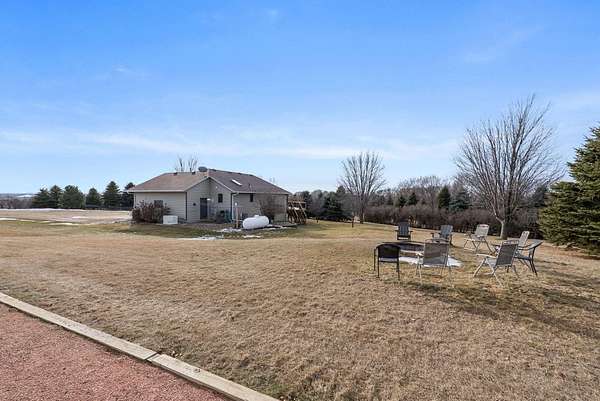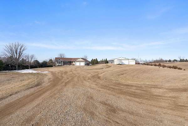 Perched atop a hill on 3.63 picturesque acres, this impressive ranch-style home offers prairie views and exceptional space both inside and out. The home features five bedrooms, four bathrooms, two cozy fireplaces, and a spacious kitchen with abundant storage, along with the convenience of two laundry rooms and a walk-out lower level. The primary suite has its own patio door leading to a secluded sitting area, a spa-like bathroom with a Jacuzzi tub and separate shower, and a generous walk-in closet. The open basement provides endless possibilities for entertaining, relaxing, or recreation. Outside, a 30*50 outbuilding with an attached 30*30 heated shop offers ample room for projects, storage, and camper parking, complete with dedicated electrical hookups.