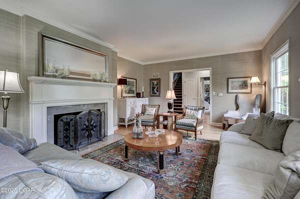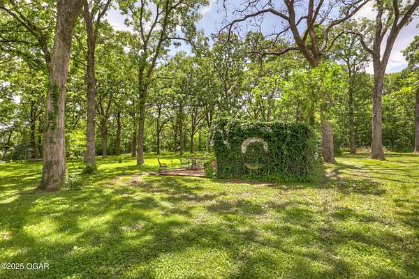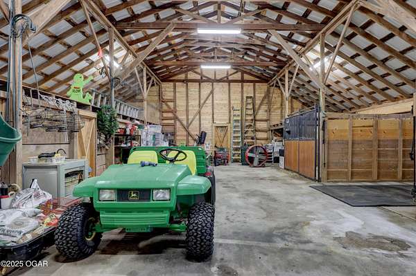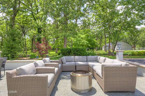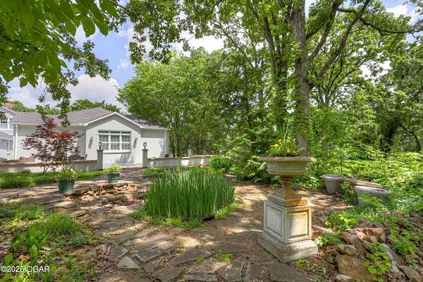 This gorgeous home on 9+ acres offers the perfect blend of privacy, charm, and space! Whether you're dreaming of a hobby farm, a peaceful retreat, a place to entertain, or just more room to breathe- this is it! This beautifully expanded and updated timeless country retreat features multiple living areas, oversized dining room with built-ins and China closet, office has bay windows, open concept floor plan, chef's kitchen, solid surface counters, large island, butcher block top, 2nd sink, bar seating, Alpine cabinetry, 2nd kitchen prep area, large family room with wood burning FP, wood beam ceiling, gorgeous wet bar has granite counters, skylights, grand foyer opens to patio perfect for extra dining hall, newer primary suite features coffee bar, kitchenette, office, built-ins, sitting area with gas FP, double sided spa luxury baths, heated marble tile floor, jetted tub, pass thru shower, extra vanity, smart closet system, 2 walk-in closets, 1 is a FEMA approved storm shelter, private exercise room, 2nd primary suite upstairs with FP, walk-in closet, jetted tub, walk-in shower, 3 additional bedrooms, sleeping porch, unfinished basement space / mechanical room, and 3 car attached garage! Exterior features include 1800 SF horse barn with stall, water, tack room, wash area, loft, sliding stall opens to white pipe fenced paddock, 1584 SF cottage style outbuilding with sink, water, metal roof, newer doors and windows, stamped concrete patios, pond, security system, cameras, sprinkler system, well for irrigation and barn drilled to the Rubidoux, buried propane tank, perennial gardens, courtyard, mature trees, wonderful views! Conveniently located minutes from Joplin Regional Airport,, about 7 miles / 17 min to KCU, 8 miles / 18 min to Freeman Health System, and 9 miles / 20 min to Mercy Hospital! Priced below recent appraisal! See attached list of amenities for a complete overview of this exceptional property's features!