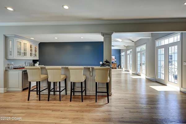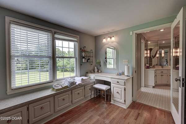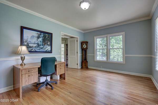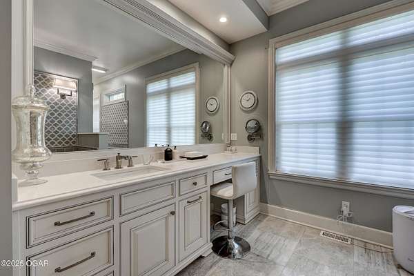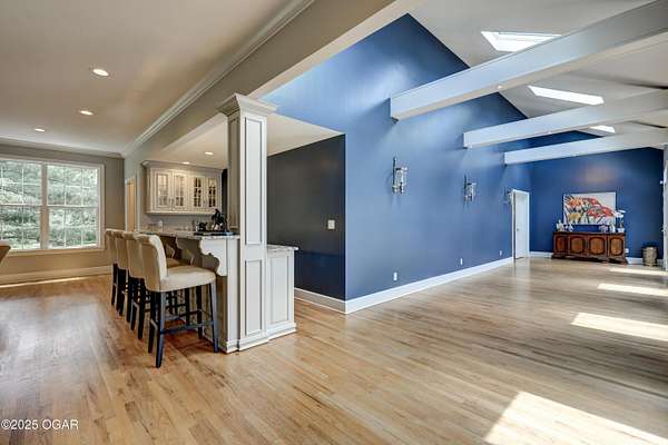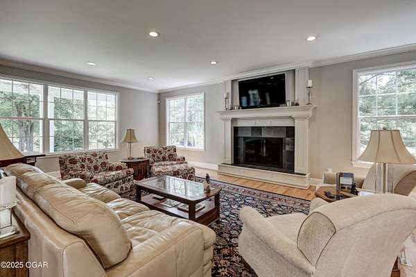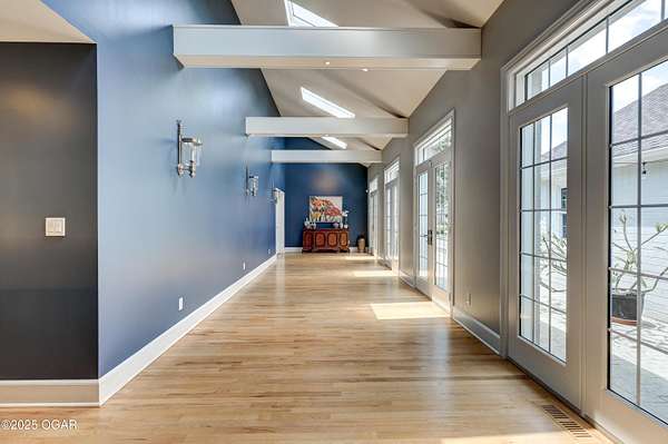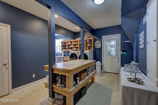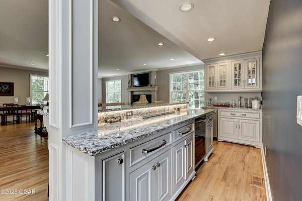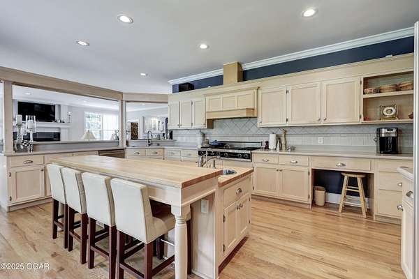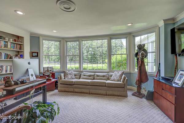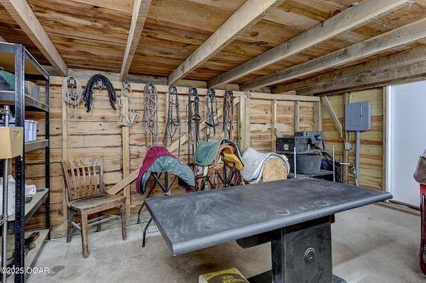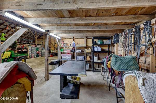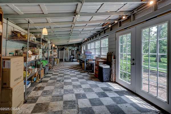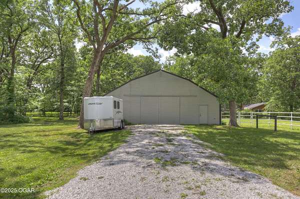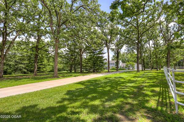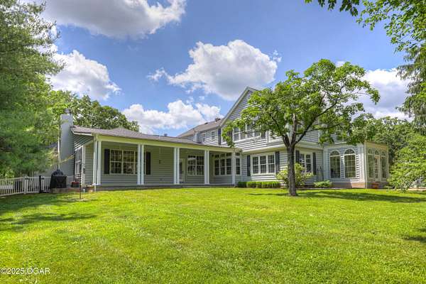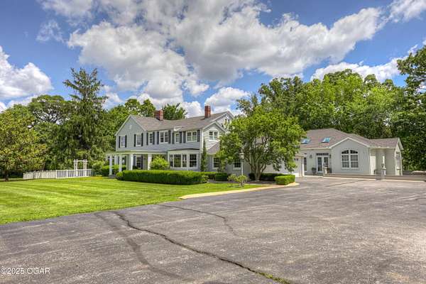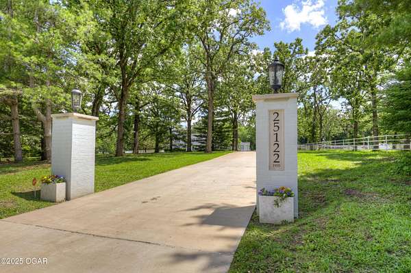 This gorgeous home on 9+ acres offers the perfect blend of privacy, charm, and space! Whether you're dreaming of a hobby farm, a peaceful retreat, a place to entertain, or just more room to breathe- this is it! This beautifully expanded and updated timeless country retreat features multiple living areas, oversized dining room with built-ins and China closet, office has bay windows, open concept floor plan, chef's kitchen, solid surface counters, large island, butcher block top, 2nd sink, bar seating, Alpine cabinetry, 2nd kitchen prep area, large family room with wood burning FP, wood beam ceiling, gorgeous wet bar has granite counters, skylights, grand foyer opens to patio perfect for extra dining hall, newer primary suite features coffee bar, kitchenette, office, built-ins, sitting area with gas FP, double sided spa luxury baths, heated marble tile floor, jetted tub, pass thru shower, extra vanity, smart closet system, 2 walk-in closets, 1 is a FEMA approved storm shelter, private exercise room, 2nd primary suite upstairs with FP, walk-in closet, jetted tub, walk-in shower, 3 additional bedrooms, sleeping porch, unfinished basement space / mechanical room, and 3 car attached garage! Exterior features include 1800 SF horse barn with stall, water, tack room, wash area, loft, sliding stall opens to white pipe fenced paddock, 1584 SF cottage style outbuilding with sink, water, metal roof, newer doors and windows, stamped concrete patios, pond, security system, cameras, sprinkler system, well for irrigation and barn drilled to the Rubidoux, buried propane tank, perennial gardens, courtyard, mature trees, wonderful views! Conveniently located minutes from Joplin Regional Airport,, about 7 miles / 17 min to KCU, 8 miles / 18 min to Freeman Health System, and 9 miles / 20 min to Mercy Hospital! Priced below recent appraisal! See attached list of amenities for a complete overview of this exceptional property's features!