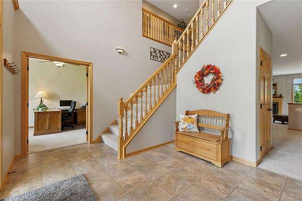 Outside, a large deck awaits - perfect for entertaining, while a relaxing fire pit gathering area by the lake offers a peaceful retreat. The oversized, insulated four-car garage is ideal for storing your toys and includes an additional separate shop or hobby room. This home has it all!
