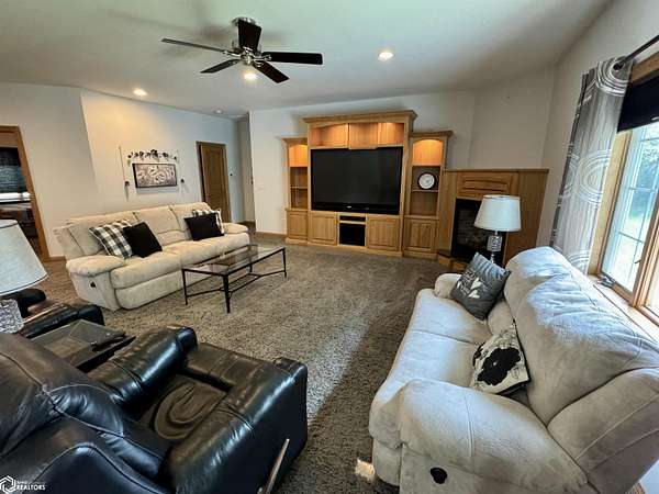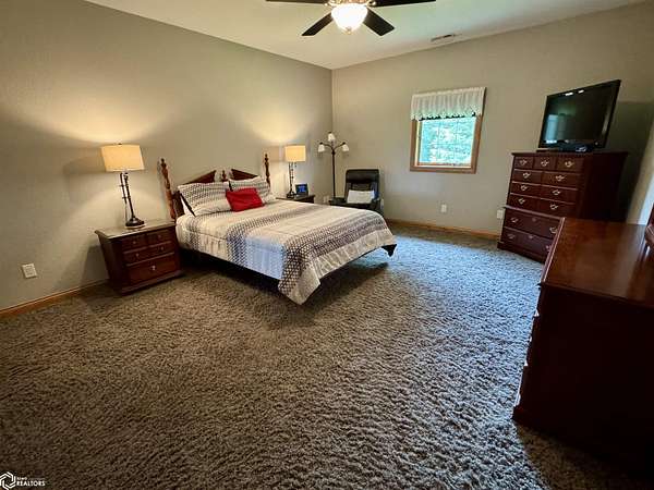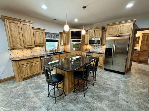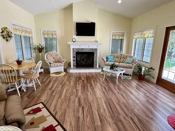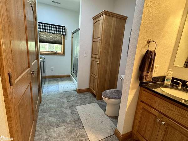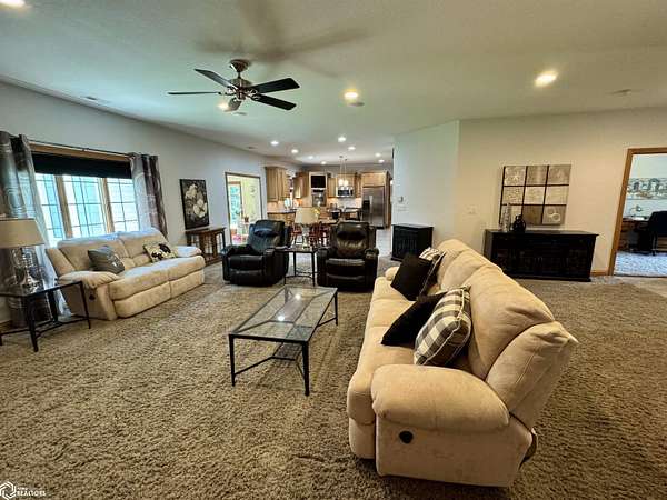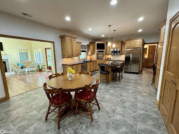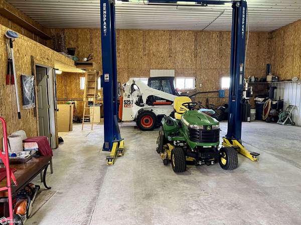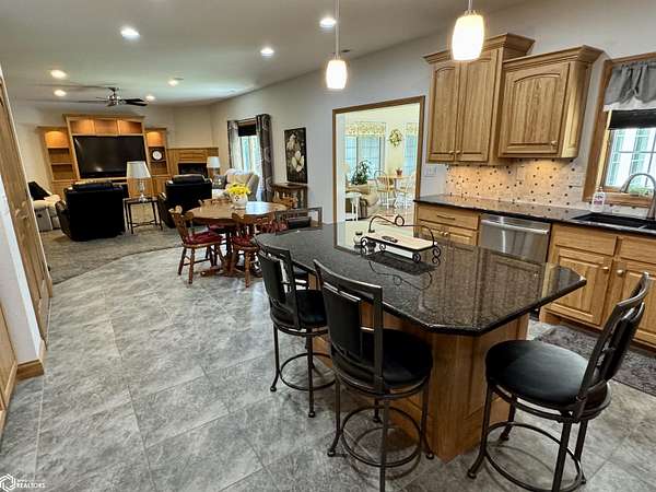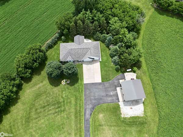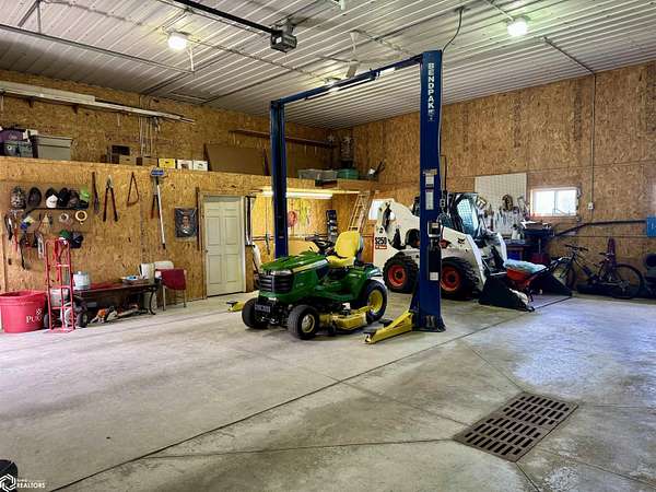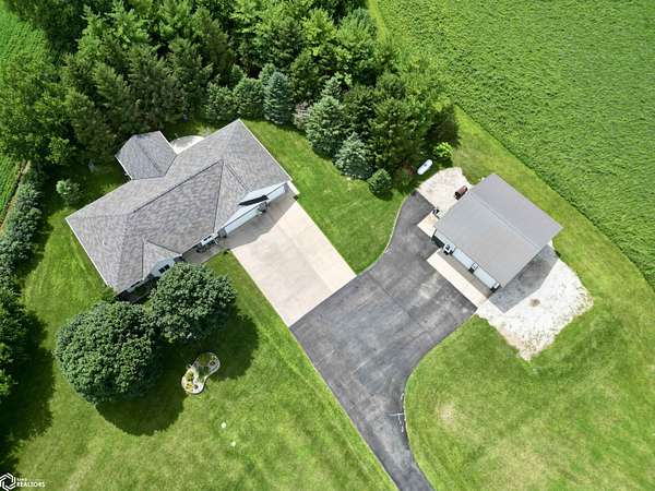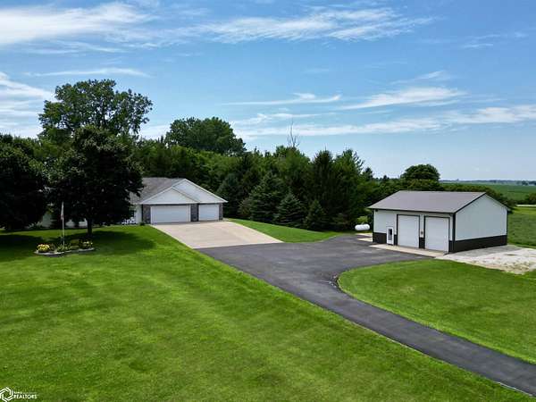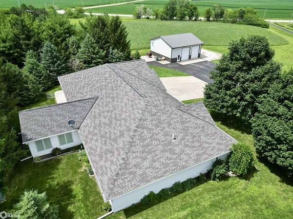 Discover this beautiful ranch-style home featuring 2 to 3 bedrooms, custom kitchen cabinets, and 9-foot ceilings throughout. Enjoy the natural light pouring in through Andersen windows, offering energy efficiency and elegance. A detached shop provides ample space for hobbies, storage, or a small business. This home blends comfort, functionality, and quality finishes-perfect for anyone seeking both convenience and craftsmanship. Energy is supplied by Geo-thermal for efficiency as floors are heated in home, garage AND the shop. Shop also boasts 10 X 12 doors, half bath, floor drain and a mezzanine for storage. Attached garage is also heated, has a storm shelter and beautiful epoxy floor. The home features zero entry, two fireplaces, two laundry areas and a wonderful sunroom. You don't have to build it when you can buy it in near new condition.