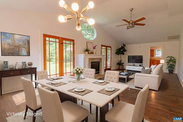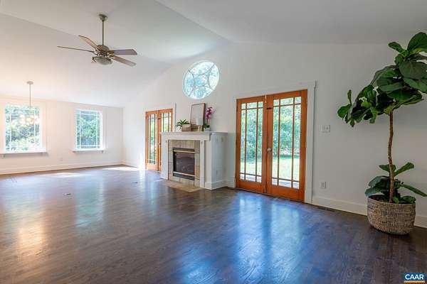 This adorable 1940's abode is ready for its next chapter! Less than 10 minutes from UVA's Fontaine Research Park, just 2 minutes from Dr Ho's, and within walking distance of Red Hill Elementary, this four bedroom gem has everything you need... large front and back yards, a circular driveway with enormous two-car garage, and spacious rooms for living your best life. Main level features living room, dining area, kitchen, half bath, large family room with vaulted ceiling, fireplace, and access to back patio, a mudroom with sink and laundry, and the primary bedroom accessed through the primary bathroom or it's own patio entrance. On the home's second level are located three additional bedrooms with hardwood floors and a second full bathroom. Boxwoods, mature oaks, and even blueberries landscape level yards perfect for entertaining. Charm, character, and convenience abound!