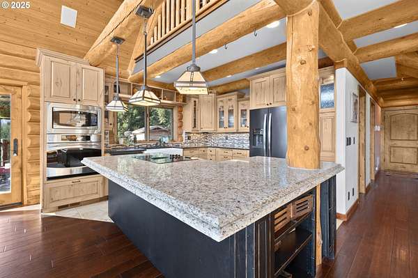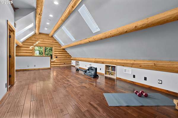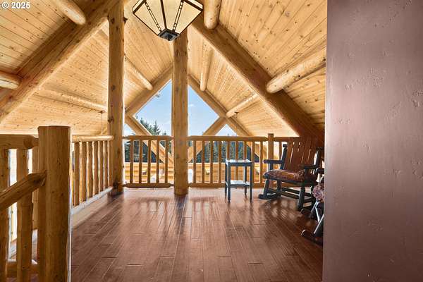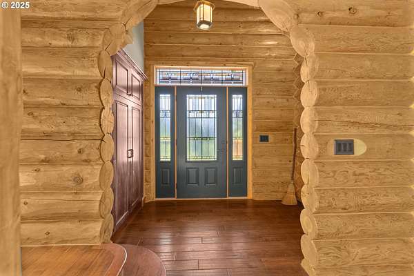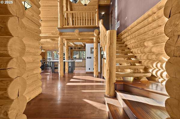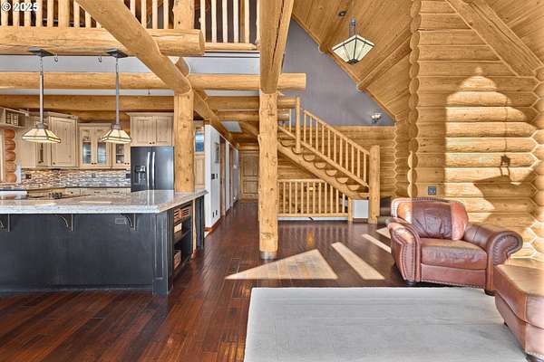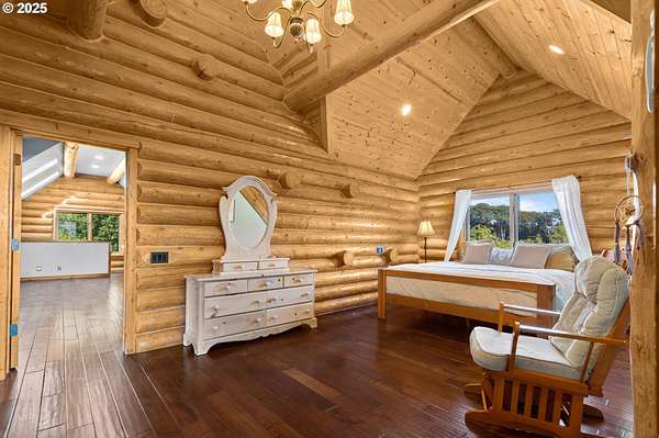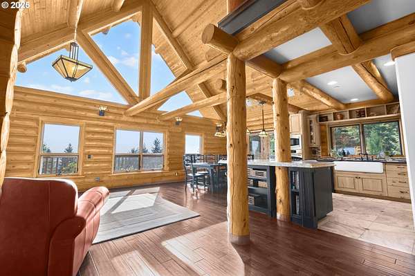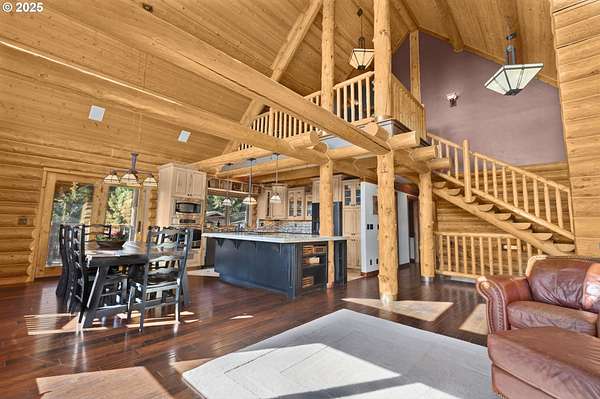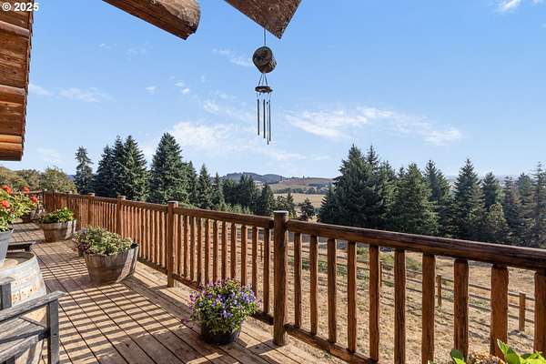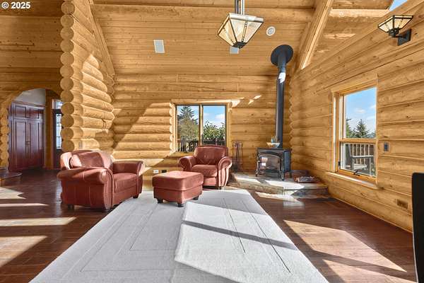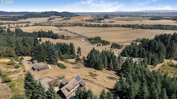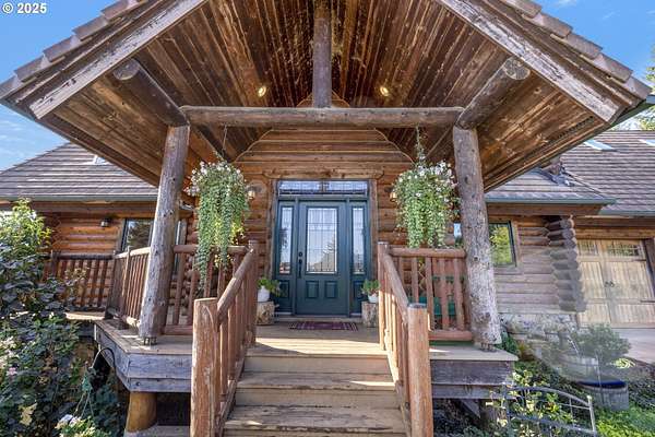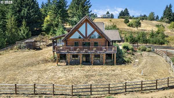 Nestled on just under 5 private acres in Monroe, this A-frame log cabin offers a peaceful retreat with room to breathe. The home is surrounded by natural beauty and showcases valley views and clear days the Central Oregon mountains come into play creating a setting that feels both private and connected.With four bedrooms, plus a potential fifth, and four full bathrooms, the home provides flexibility for a variety of living arrangements. Light-filled rooms throughout highlight the natural wood and frame views of the surrounding landscape.At the heart of the home is a spacious kitchen that opens into the great room, where vaulted ceilings and expansive windows bring the outdoors in. In addition, a Synergy 3D series WaterFurnace provides forced air heating & cooling and hydronic heat for radiant floors (all 3 floors independently controlled) in one convenient package and the solar panels provide energy cost savings.The open layout in the home is well-suited for gathering, entertaining, or simply enjoying the changing seasons.Outdoors, the land offers space for recreation, gardening, or horseback riding or quiet enjoyment and nearby rivers provide excellent fishing opportunities.This property combines the privacy of country living with convenient access to nearby towns making it a unique opportunity in the Willamette Valley.