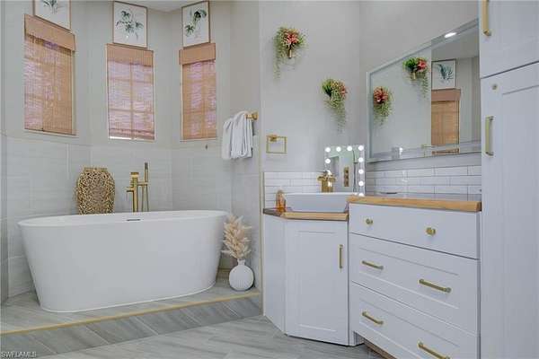Welcome Home! This beautifully maintained salt water pool home offers the perfect blend of comfort, style and modern upgrades. Step outside to your oversized screened lanai featuring a heated salt water pool, built-in spill over spa, lighted waterfall and elegant travertine tile. An ideal setting for entertaining or simply unwinding. Set on a fenced 1.59 acre lot, this property provides both privacy and plenty of space to enjoy the outdoors. Inside, you'll find brand-new wood like paint tile flooring throughout, all new light fixtures and fans, and a stunning custom master bathroom complete with a luxurious soaking tub and designer tilework. Recent updates ensure peace of mind and convenience, including brand new appliances with oversized washer and dryer, updated plumbing, new reverse osmosis system, new water heater, new pool equipment, and an entire new septic system. Every detail has been thoughtfully updated, making this home truly move-in ready. Don't miss the opportunity to own this exceptional property!