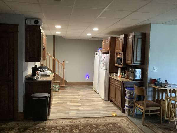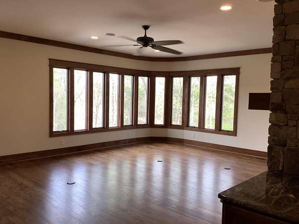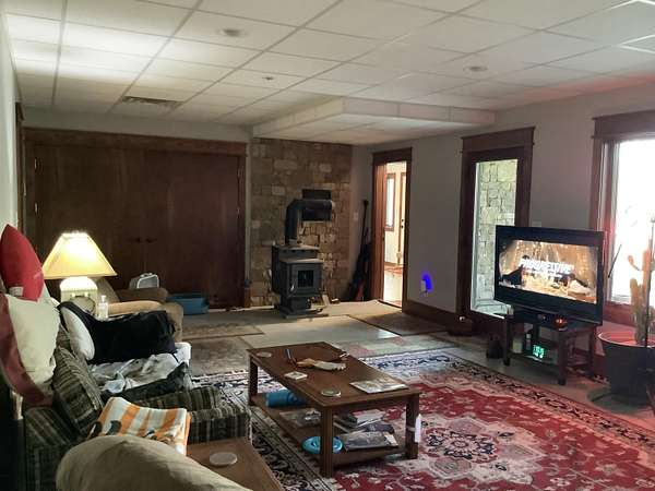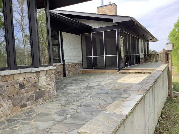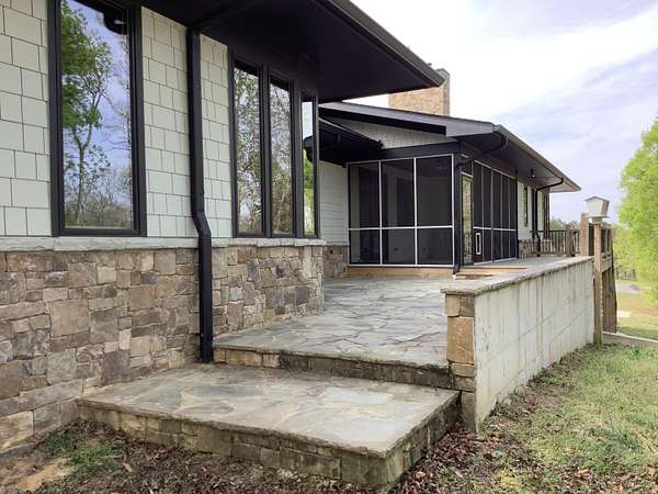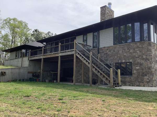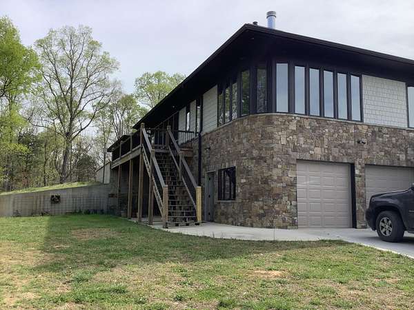 Searching for privacy? Welcome to this stunning custom built 8,300 sq ft home on 77.48 private acres of natural beauty with the perfect blend of elegance, comfort, serene riverfront living. Step inside the foyer - Large gallery area with hardwood floors, granite counter tops throughout. Custom walnut cabinetry throughout. Enjoy a double-sided wood burning fireplace from kitchen ad great room. Custom home features 5 bedrooms, 4.5 baths. Water view from great room, formal living room and formal dining room, pocket doors. Also, 5 car garage with abundance of storage or extra living space. Generator that supports the full house. 1,000 gallon propane tank underground, 3 HVAC units (1 upstairs) (2downstairs), 2nd kitchen in basement, Anderson windows, wood stove in basement, extra flooring for basement area. 3,600 ft of 2 inch Ubnuor waterline to house, full wired internet stereo system in great room. Master on main floor with bay window with sitting area, jetted tub, walk-in closet and more. Outdoor living at it's best! Enjoy peaceful morning & unforgettable sunsets. A must see - Call listing agent for showings. Seller will divide property, Seller will keep lot six and sell lot five for 2.2M