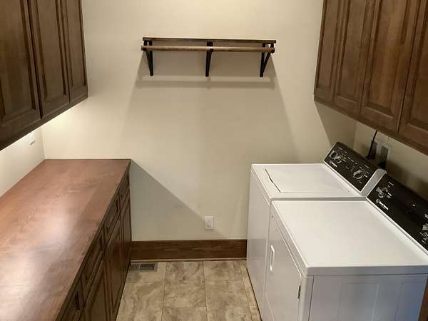 - Built-In Electric Oven, Cooktop, Dishwasher, Disposal, Down Draft, Electric Oven, Electric Water Heater, Microwave, Propane Cooktop, Refrigerator, Stainless Steel Appliance(s), Washer/Dryer
