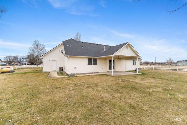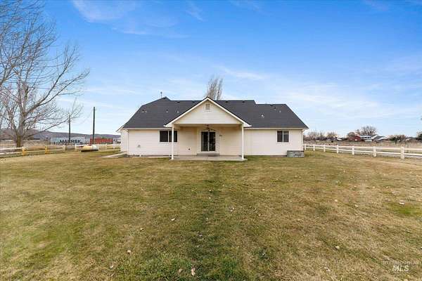 Enjoy peaceful country living just minutes from town! This well-maintained property sits on 4.97 acres and is perfectly set up for horse/ livestock lovers! The home features brand new interior paint and a bright, open living area filled with natural light. The kitchen flows comfortably into the dining and living spaces, ideal for both entertaining and everyday living. Brand new dishwasher and fridge stays! The spacious primary suite offers a relaxing retreat, while additional bedrooms and upstairs bonus room provide flexibility for guests, hobbies, or a home office. Recent maintenance includes HVAC serviced and the septic pumped within the last month and sellers offering 1 year warranty for added peace of mind. Outside you'll find a true horse/ livestock property with a barn, stalls, and riding arena, plus ample room for animals, equipment, trailers, and RV parking. The usable acreage gives you space to ride, garden, or simply enjoy Idaho's wide-open skies. Permanent outside lights (2024) makes holidays, birthdays, events even more relaxing! Conveniently located with easy highway access without the road noise, you can enjoy quiet country evenings while still being a short drive to schools, shopping, and downtown Emmett. If you've been searching for acreage, functionality, and privacy in one property on a PRIVATE lane - this is it!