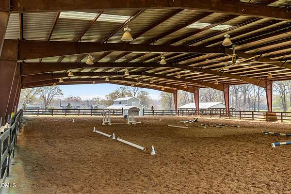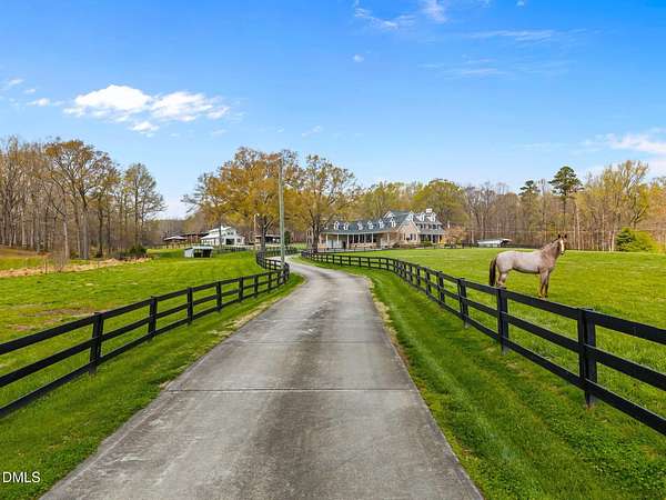 This Exquisite Equestrian Estate combines high end elements, exceptional design details and thoughtful functionality in a picture book setting. Located in the North Durham County scenic farm community of Rougemont. Convenient to all the Triangle area of NC has to offer. This stand-out property features a sophisticated Manor Home that embraces the country setting and has been meticulously updated to modern design and luxury convenience. It includes a pool with resort-like outdoor space, a private mancave with separate entrance and ample flex areas. The equestrian amenities are brilliantly situated for performance and ease. The main center aisle barn features 7 stalls, a full apartment and all the comforts needed for your horses. The second center aisle barn features 4 stalls. The large covered Clear Span Arena has quality footing, lighting, fans and sprinklers for all season riding. Hack out or hike on the 10 acres of groomed trails through beautiful woodlands and a creek. Multiple useful outbuildings include a large storage building, greenhouse, workshop w/garage, 5 bay equipment storage, shavings bin and a compost bldg which is already setup to convert to a barn. Intentionally positioned on almost 30 acres with lush pastures and run-ins and surrounded by established farms and a church conservatory. The pristine setting and comfort minded luxuries make this a welcoming sanctuary to call home.