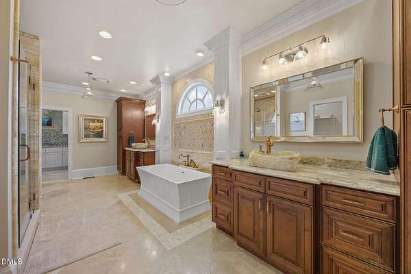 - Apartment/Suite, Bar, Built-In Features, Butler's Pantry, Cathedral Ceiling(s), Crown Molding, Double Vanity, Dual Closets, Eat-In Kitchen, Entrance Foyer, High Ceilings, Kitchen Island, Pantry, Primary Downstairs, Room Over Garage, Separate Shower, Smooth Ceilings, Soaking Tub, Stone Counters, Tile Counters, Tray Ceiling(s), Walk-In Closet(s), Walk-In Shower, Wet Bar, Whirlpool Tub