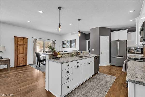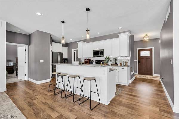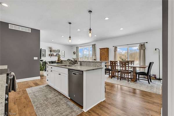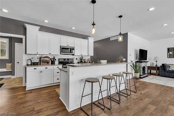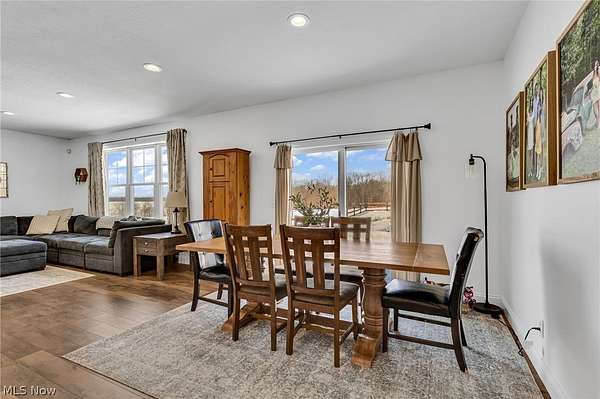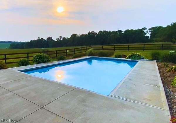 Ranch home features 4 spacious bedrooms & 3 full bathrooms, thoughtfully designed for both everyday comfort & elegant entertaining. The primary bedroom is conveniently located on the main level, complete with ensuite bath. The heart of the home is the eat-in kitchen, beautifully appointed with a large island, generous seating, and quartz countertops throughout, offering both style & functionality. Downstairs, the finished basement provides additional living space, including a full bathroom and bedroom, perfect for guests or a private home office. Step outside & enjoy the in-ground pool, surrounded by expansive grounds that invite outdoor entertaining, recreation, or simply soaking in the peaceful countryside. This stunning property showcases rolling meadows, open skies, and panoramic country views includes additional parcel of 6.45 acres with sale - a rare opportunity to own a refined home with acreage, privacy, and views that never get old.