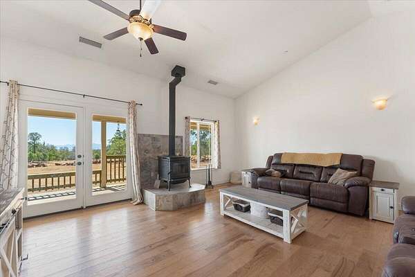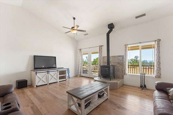 Check out this Gorgeous 50-Acre Ranch with Mountain Views, Privacy, and Income Potential! This is an Incredible opportunity to own a nearly 50-acre gated ranch offering stunning mountain views, privacy, and beautiful custom finishes throughout. Just minutes from town, this immaculate home features a spacious covered wrap around porch, split floor plan, wood flooring, wood stove, and excellent use of space.