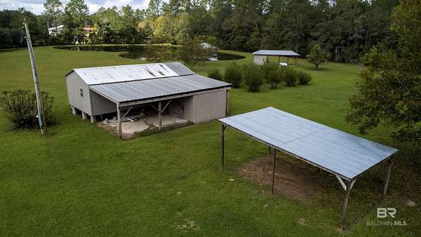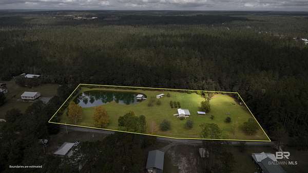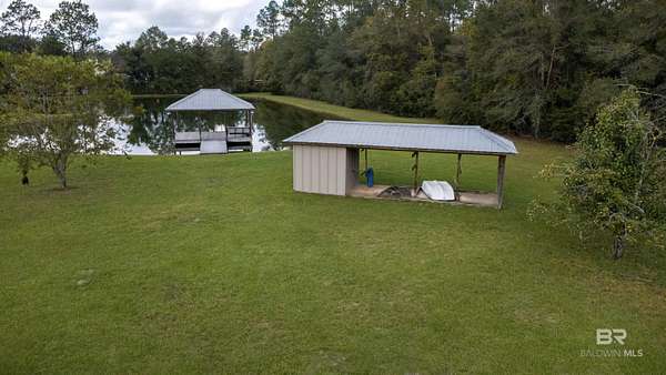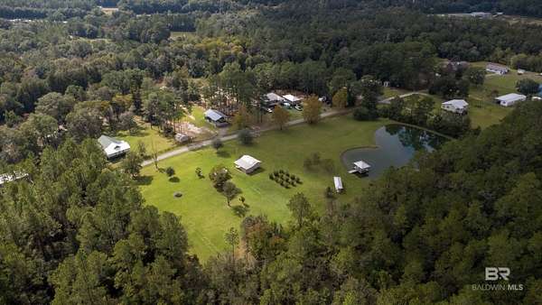 Beautiful 4-acre fenced property with stocked 1-acre pond, lighted gazebo, and deeded Styx River access just across the road! Enjoy country living with 12 irrigated blueberry bushes, 3 canning pear trees, 2 pear trees, 2 pecan trees, and a fig tree. Property features 2 storage buildings, 2 water wells (one active 85 ft and one feeding the pond), and irrigation around the blueberry bushes. The pond includes a liner and ladder access for easy enjoyment. Zoned X - no flood zone. Peaceful setting perfect for a homesite, weekend retreat, or small hobby farm. Come enjoy the quiet life in Baldwin County with your own stocked pond and river access. Buyer to verify all information during due diligence.
