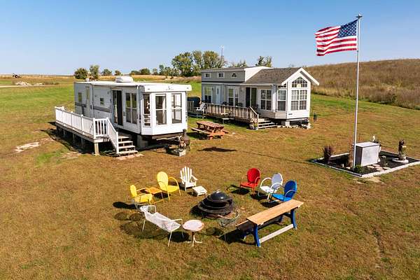 Park-model perfection meets the rolling prairie, all with a gorgeous lakefront view to boot! Discover your own private retreat on Latimer Lake, just outside Long Prairie, MN amongst lazy farmland and quiet roads! This 1.6-acre property comes ready to enjoy with two clean, well-maintained park model/campers, each with a deck and sweeping lake views.The featured park model showcases a mahogany-tone trim and cabinetry, modern kitchen and bathroom, sleeping loft, and a retractable awning. Arrive with ideas of a quick camping weekend and immediately shift your aspirations to something permanent. This setup is turnkey ready, with electricity, septic, water and filtration all in place. Camp for the short term, or move in completely and start living a wholesome, simple lake life. The additional trailer is clean, well lit, complete with a bedroom and bathroom, and ready for extended family or multiple guests. The gently sloped lot offers the perfect vantage point from Latimer Lake, and the public landing is just a few twists and turns down the road. Whether you're looking for a turnkey summer getaway, a family retreat, or the perfect lake lot to eventually build your dream cabin, this property is a prime candidate. Experience simple lake life without all the competition just to simply enjoy it.