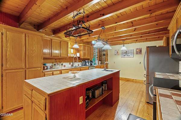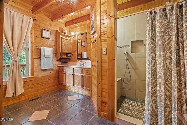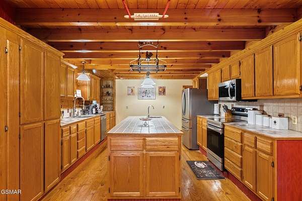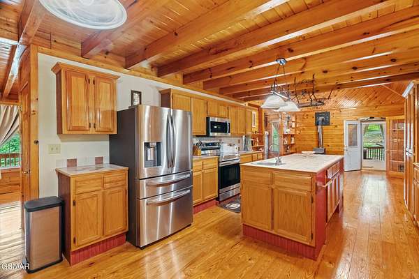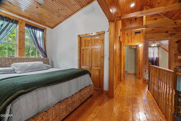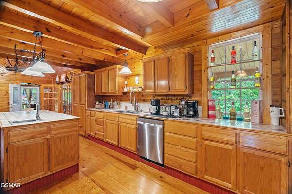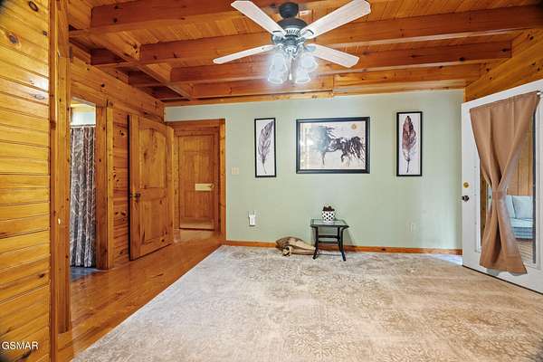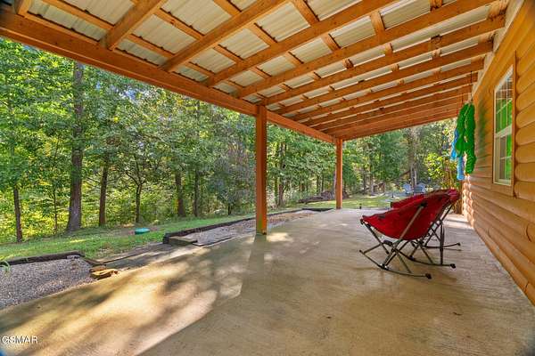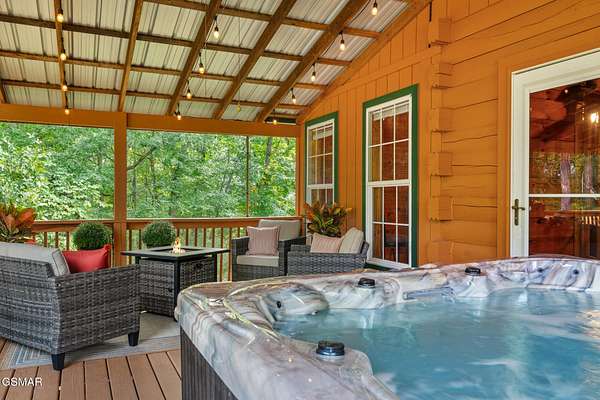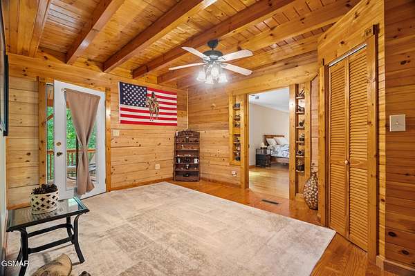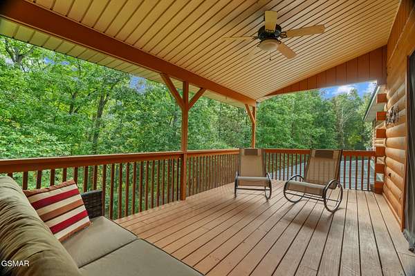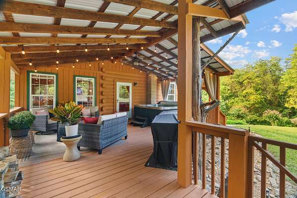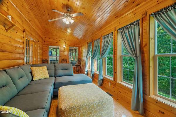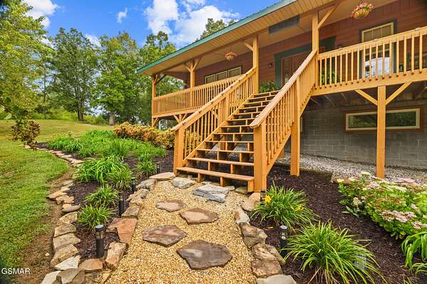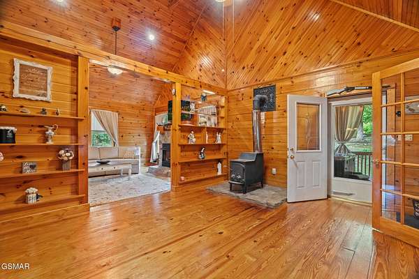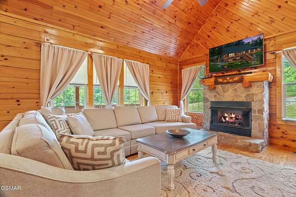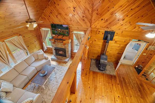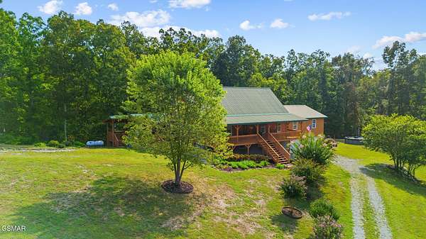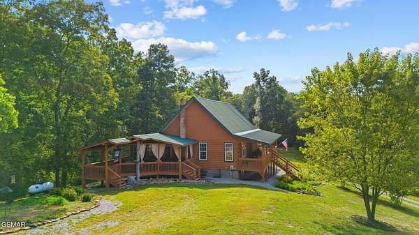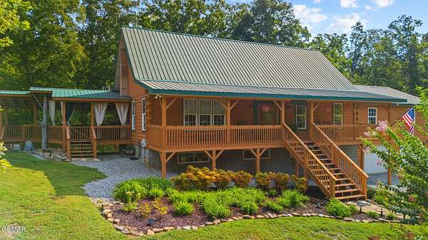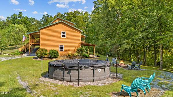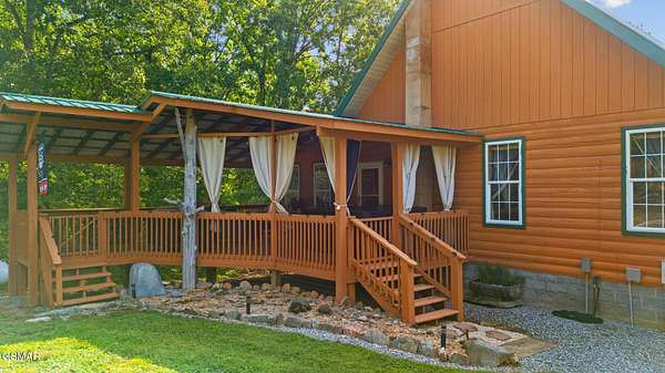 Nature Lovers here it is! Escape to your very own Smoky Mountain retreat with this stunning 3-bedroom, 3-bathroom true log cabin offering over 3,700 sq ft of living space on nearly 2 private acres! Recently stained in 2023, this home is full of charm and craftsmanship from top to bottom. The open floor plan welcomes you with soaring ceilings, pine wood floors, and a gorgeous gas log fireplace as the centerpiece of the main living area with additional FISHER wood burning stoves upstairs and downstairs. The chef's kitchen features a large island, new stainless steel appliances, and plenty of space for entertaining. The oversized main-level master suite is a dream, complete with its own office nook and balcony, a spa-like bathroom with walk-in shower, and direct access to outdoor living. Relax in the private covered patio with a brand-new 10-12 person hot tub, ceiling fan, lighting, and whimsical curtains for year-round enjoyment. Upstairs you'll find two spacious bedrooms, a full bath, a bonus loft used as a guest bedroom, and even an authentic prayer room. The finished walk-out basement adds more living space, a full bathroom, plus a 2-car garage with workshop area. Outdoor living is just as impressive with multiple porches, a sunroom, balcony, fire pit, and a brand-new above-ground pool. A rain water creek runs along the wooded property after a storm, enhancing the sense of peace and privacy. Other updates include a Culligan water purifier (owned, not leased). And the location? Just 1.4 miles to Douglas Lake and the public boat ramp at Oasis Cove-perfect for boating, fishing, and lake days! Right next to this is the TVA public access to 212 acres which allows hunting, camping and hiking trails. All for free! This home offers the best of both worlds: private mountain living with easy access to the water, nearby amenities and 212 acres of public land and lake. Schedule a showing today and see just what East Tennessee living is all about! Drone photography is used in this listing.