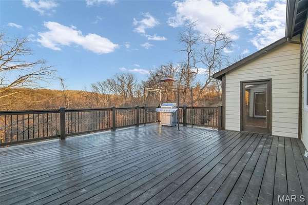 Welcome to 2516 Ridgeview Drive, High Ridge, MO 63049. This inviting ranch-style home combines modern updates with expansive outdoor living and a generous 1.6-acre lot that backs to trees for ultimate privacy. The brand-new deck overlooks the natural treescape and the refreshing pool area, perfect for entertaining or unwinding after a long day. Exterior updates include fresh Behr paint and durable LP SmartSide siding on the exterior, plus new shutters, windows, lighting, and a refreshed garage interior. The property features an attached 2-car garage for convenient parking and storage. Inside, you'll find a bright, turnkey interior with fresh paint, updated solid-core doors, updated kitchen and bathroom surfaces, and new appliances to streamline daily living, plus a convenient main-floor laundry. The walk-out basement is a blank canvas, ready for your personal touch--imagine finishing it to add living space, a home gym, or a recreation area, all with existing access for ease of development. A standout feature is the dry sauna located in the basement, providing instant wellness at home. The bathroom features a standing shower, a separate jet tub, and a double vanity, providing everyday luxury. Outdoor amenities include 120 tons of new/topsoil landscaping, a cedar privacy fence with rock retaining walls, two gravel parking spots, and a brand-new 30' round above-ground pool (electrical hookup by buyer). The property also features a recently sealed driveway for curb appeal and low maintenance. Located just minutes from Schnucks High Ridge, Walgreens, House Springs Quarry Park, Beaumont Boy Scout Camp, and with quick access to Highway 30 for easy trips to St. Louis. Don't miss this opportunity to own a versatile, updated home in a serene, private setting--schedule your tour today!