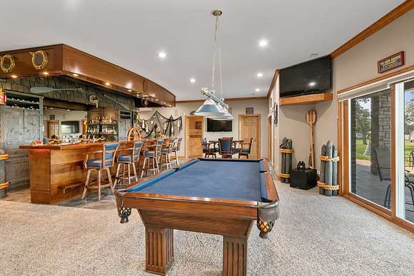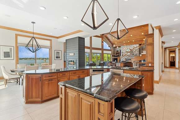One of a kind Chain O'Lakes 10,000 Sf Waterfront Estate on over 6 acres, with incredible views of Fox Lake's Columbia Bay. This Architectural Masterpiece features an open concept main floor with a gourmet kitchen, custom bar, family room, dining room, office w/ full bath, 4 season room & an impressive main level primary suite. A walk out basement with custom bar, home theatre & exercise room. 6 Fireplaces, 1000 sf Concrete deck overlooking resort style pool w/ fountains & waterfall and full interior pool remodel (100k) Outside Bar with shutter style doors, 2 Level Radiant Heat 18+ Car Garage w/BBCourt, remodeled waterfront guest house. Its a must see.