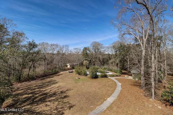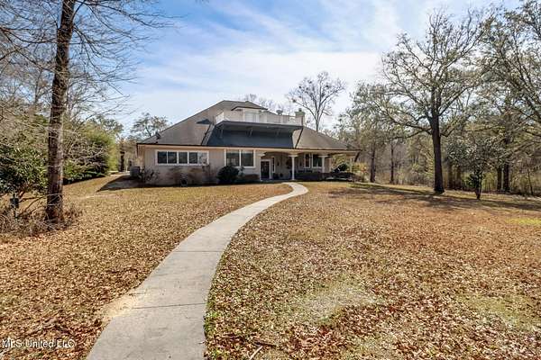 Welcome to this truly one of a kind retreat nestled on 10+/- acres, yet close to everything in Pass Christian. The natural surroundings offer a peaceful sense of privacy while still enjoying convenient access to nearby amenities. The cooks dream kitchen features a double oven, separate cook top, wine cooler, large island, and an abundance of windows that create a picturesque setting perfect for entertaining family and friends. The extra large sunken living room showcases a striking ceiling design you truly must see in person. Lots of recessed lighting with a convenient automated lighting system and a cozy fireplace sure to set the tone for relaxation. Upstairs offers a separate living area and private balcony, ideal for guests or a quiet retreat. Step outside to enjoy the beautiful backyard with covered patio and gunite swimming pool perfect for outdoor living and entertaining. This rare exceptional property also included an additional 10+/- acres ( totaling over 20 acres) to offer endless possibilities.