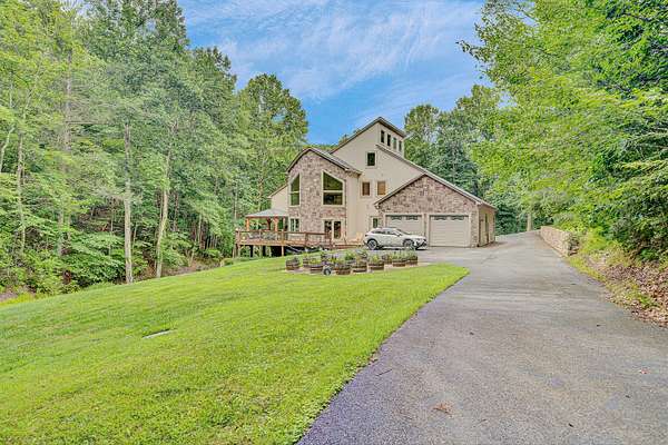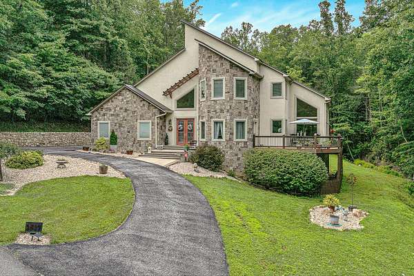 Your Private Sanctuary Awaits - A One-of-a-kind Retreat in West Roanoke County. Welcome to a rare gem nestled on over 4 acres of pristine, secluded land - yet just one mile from the convenience of the interstate and West Salem's vibrant main street. This contemporary 21/2-story home offers 4,000 sq ft of masterfully designed living space, combining luxurious comfort with timeless architecture. Crafted with a striking mix of stone and stucco, this home stand apart with its one-of-a-kind design and tasteful decor throughout. Inside, you'll find 3 spacious bedrooms and 4 beautifully appointed bathrooms. The fully finished basement offers flexible space for entertaining, a home gym, or even a private guest suite complete with kitchenette and double sided gas fireplace. The main living area
