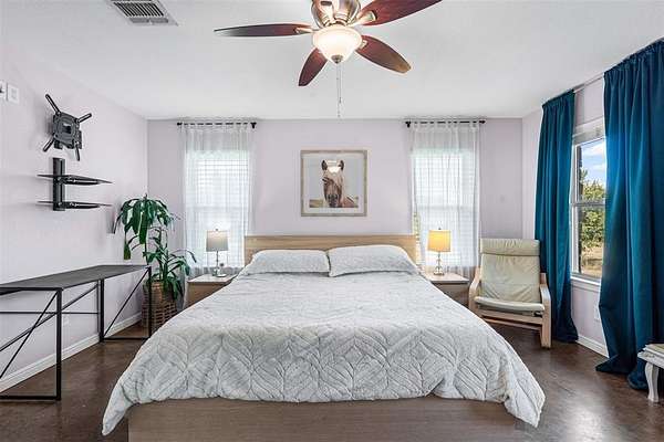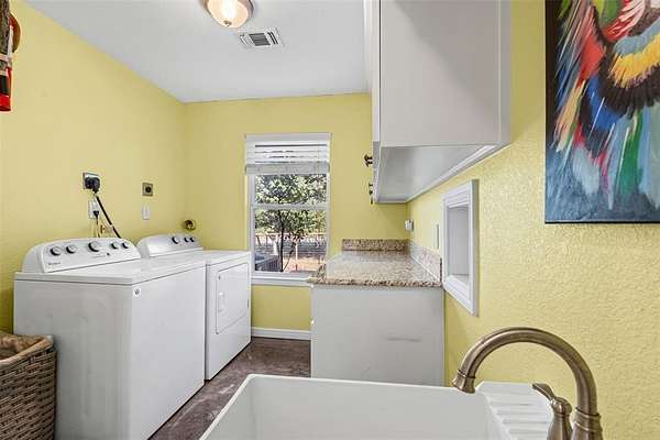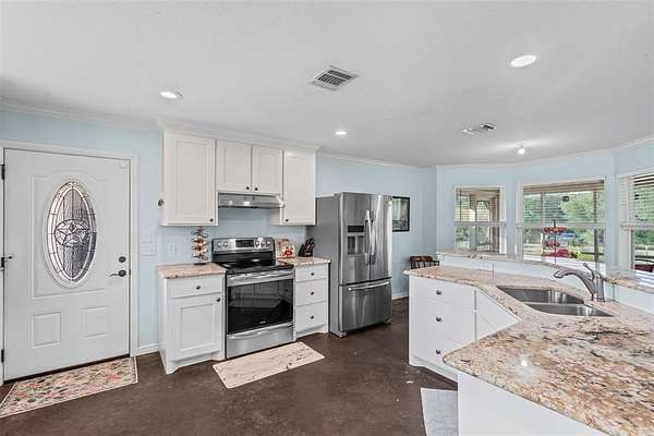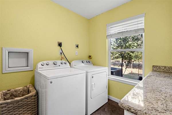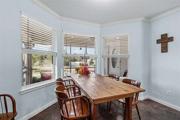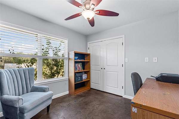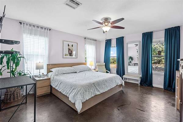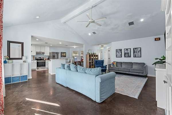 Outside you'll find a large patio inviting outdoor dining & relaxation, while the landscape features mature trees that offer natural privacy. The fenced grounds are ready for your animals, & a chicken coop adds a touch of farm-to-table living. With a durable metal roof and easy-maintenance stained concrete flooring throughout, your new home promises durability & style.