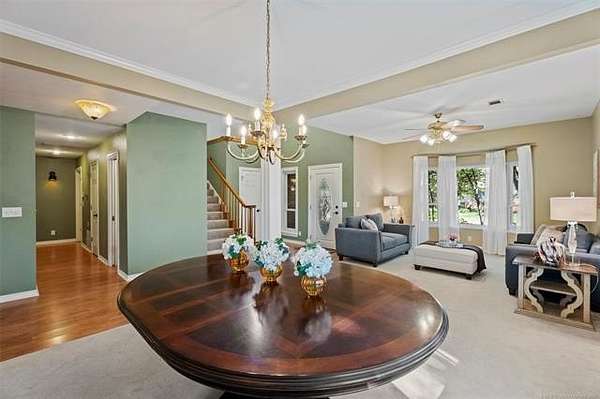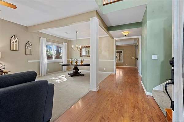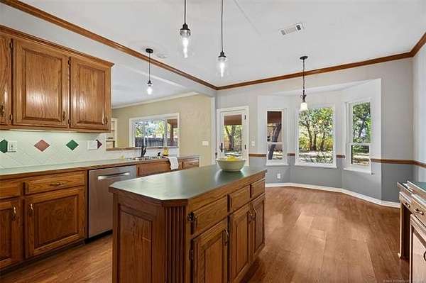 Nestled on Circle Mountain with sweeping views of Bartlesville and Osage County, this beautifully maintained home offers the perfect blend of serenity, space, and convenience, all with city utilities and no HOA.