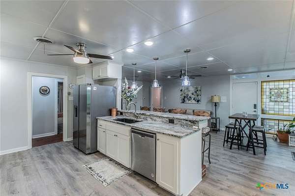 Nestled in the heart of Canyon Creek, this beautifully updated custom home offers a rare combination of privacy, space, and convenience. Set on 3.66 wooded acres with a seasonal creek and lush, park-like grounds, this property is a true sanctuary just minutes from downtown and I-35. Featuring a combined total of 5 bedrooms and 3.5 bathrooms, including a separate guest house, this home is perfect for multi-generational living, working from home, or homeschooling. The main home boasts an open-concept kitchen, stylish modern updates throughout, and extensive brickwork that adds timeless charm. Enjoy the tranquility of nature in the private backyard, explore artistically designed outdoor gardens, and unwind by the outdoor fire pit. Multiple outbuildings provide endless potential-whether for storage, a workshop, or creative studio space. With its blend of serene natural beauty, functional living spaces, and artistic touches, this one-of-a-kind property offers both inspiration and comfort.