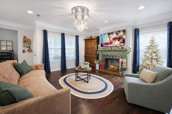 This home features a BRIGHT, AIRY OPEN-CONCEPT LAYOUT with a seamless LIVING ROOM AND KITCHEN COMBINATION, ideal for everyday living and entertaining. A STUNNING ELECTRIC FIREPLACE with CUSTOM MANTLE serves as a warm focal point, complemented by SHIPLAP ACCENTS, DESIGNER WALL FEATURES, and ELEVATED ARCHITECTURAL DETAILS that add character and charm throughout.
