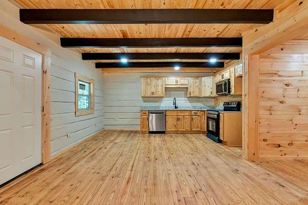 Charming Cabin Retreat on 10 Private Acres - Excellent Hunting Property Escape to your own slice of paradise with this newly updated 1 bedroom, 1 bathroom cabin nestled on 10 peaceful acres surrounded by mature trees. The property offers the perfect blend of rustic charm, modern comfort, and prime hunting land, making it ideal for a weekend getaway, short-term rental investment, year-round living, or a hunter's retreat. Inside, you'll love the warm wood finishes, exposed beams, and open floor plan. The kitchen is outfitted with stainless steel appliances, granite countertops, and custom wood cabinetry. Natural light fills the space, highlighting the craftsmanship throughout. Step outside to enjoy your covered front porch, or head into the woods where the land has abundant hunting game such as wild turkey and deer. With 10 acres of private, wooded ground, you'll have endless opportunities for hunting, hiking, gardening, or even adding additional structures. Located just minutes from town but tucked away enough to feel completely private, this cabin is the perfect retreat for nature lovers, outdoor enthusiasts, and those seeking a slower pace of life.