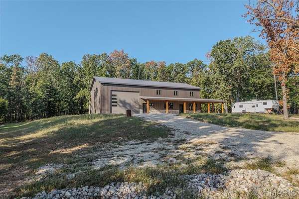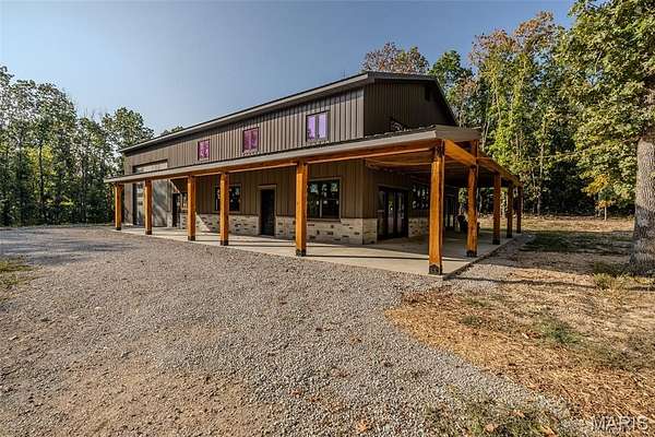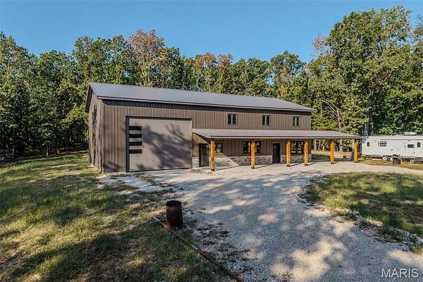 Tucked away on 15 secluded acres just 6 miles from town and minutes from Bennett Spring State Park, this barndominium offers the perfect blend of privacy, nature, and potential. Located on a blacktop road, the home sits at the end of a winding 700-foot driveway, completely hidden from view--ideal for those seeking peace and quiet. The barndominium is in the early stages of construction, giving you the opportunity to finish it to your own taste. The current plans include 4 bedrooms, 2 bathrooms, an office, and a loft, with the seller willing to share floor plan ideas. Electric, water, and septic are already installed, and construction will continue, with pricing to increase as work progresses. The structure features a walk-out patio on the second floor, and the covered main-level patio is supported by beams cut from trees on the property, adding rustic charm. Surrounded by mature trees and abundant wildlife, this property is a nature lover's dream. Whether you're looking for a forever home, weekend retreat, or investment, this one-of-a-kind property is full of potential.