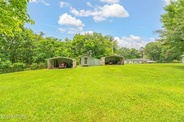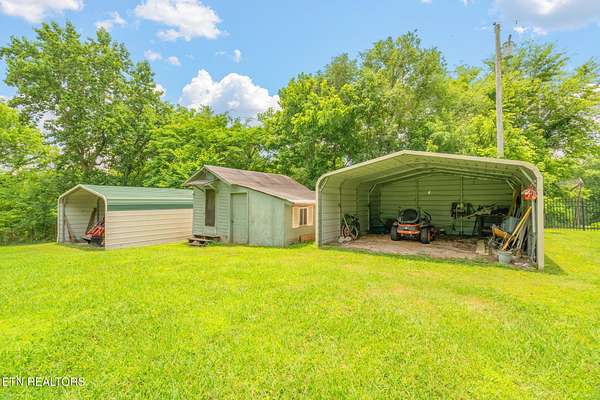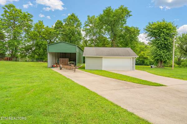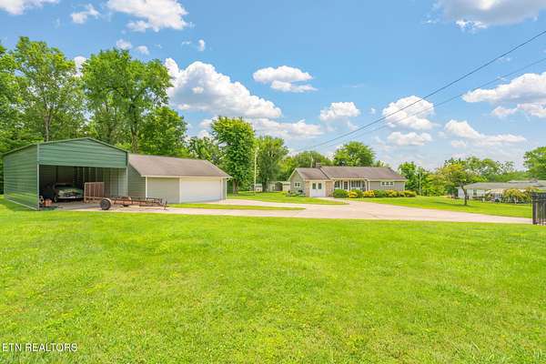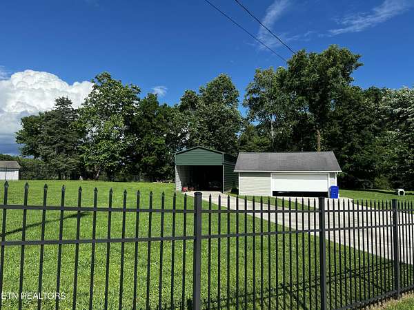 Rare Find - Unique Estate Loaded with Extras! Opportunities like this don't come along often, especially in this price range! This charming rancher sits behind a beautiful wrought iron fence with gated entry, offering both security and incredible curb appeal. The property features a level lot with multiple outbuildings, perfect for anyone needing extra space for hobbies, storage, or business. You'll find a 24x28 detached garage, an RV building enclosed on three sides, two additional detached carports (also enclosed on three sides), plus a storage shed-more than enough room for all your vehicles, equipment, and toys! Concrete driveways provide easy access to the home, detached garage, and RV building. Step inside to discover original hardwood floors and a cozy living room complete with a tongue-and-groove wood accent wall surrounding the fireplace. The garage has been thoughtfully enclosed to create a spacious third bedroom or den, complete with a handicap-accessible, full-tile bathroom featuring a convenient roll-in shower. Out back, enjoy a large deck perfect for entertaining, overlooking the lush backyard with mature shade trees and a small wooded area that provides extra privacy. Located just outside of town, you'll enjoy no subdivision restrictions, no HOA fees, and easy access to shopping, work, and amenities-all while still feeling like you're away from the hustle and bustle. Don't miss out on this hard-to-find property with tons of extras at an unbeatable price. Call today to schedule your private showing!
