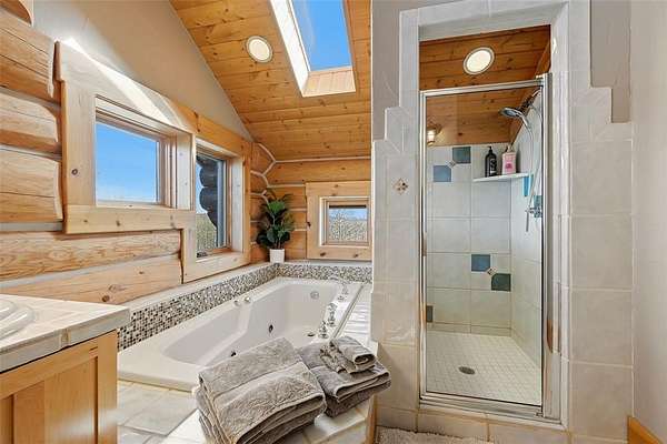 - Jetted Bathtub, Multi-Level, Steam, Vaulted Ceilings, Wired For Cable, Wood Fireplace