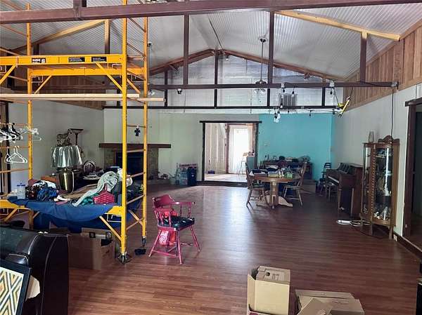 Escape to your own private retreat with this cozy, country-inspired cabin set on a versatile piece of land offering access from two separate roads which is an incredible opportunity for flexibility and future potential. This one-of-a-kind home, thoughtfully crafted from repurposed storage containers, blends creativity with comfort, perfect for those who appreciate unique design and Pinterest-worthy charm. Step inside to a spacious central living area that serves as the heart of the home. The primary suite is tucked to the left, featuring generous storage, a walk-in shower, and a wood-burning stove for added warmth and character. On the opposite side, you’ll find guest bedrooms with a dedicated bathroom, offering privacy and convenience for family or visitors. At the rear of the home, the kitchen, laundry, and pantry areas provide functional living space, with direct access to a fenced outdoor area ideal for keeping pets safe and secure. Located within a gated community, residents enjoy access to a variety of amenities including a lake, campground, private airstrip, and more, making this property as adventurous as it is peaceful.