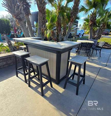 Luxury Class A and Super C Motor Coach Resort rated #1 in the South and in the Top 5 RV Resorts in the United States. This beautiful lot sits lakeside and offers a stunning view of the fountain. The site features plenty of space for enjoying the outdoors including a dining table with seating for four and a Berlin Gardens poly bar top with 4 stools. On cooler evenings gather with friends around the stacked stone propane fire pit. The serene lake view is framed by a stacked block retaining wall and silhouetted by palm trees. There is a French drain at the front of the lot and a deck box for your storage needs. Even with all of the existing amenities, this lot offers additional space for upgrades such as an outdoor kitchen, pavilion and casita! . Resort amenities include a 6,000 sq ft clubhouse, zero entry infinity edge pool, hot tub, well-appointed fitness center, wet/dry sauna, movie theater room, stocked lake, dog parks & dog wash, and daily activities for guests. Low COA fees and property tax! Great investment property operated through a national, income generating rental program. Buyer to verify all information during due diligence.