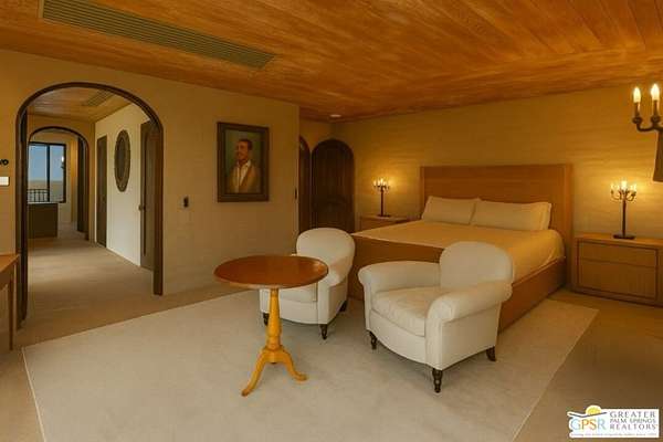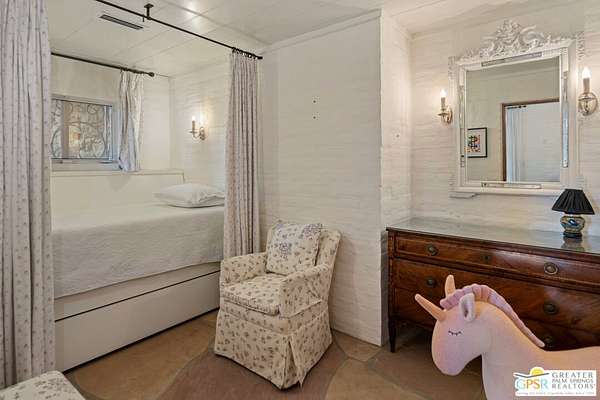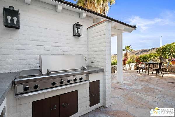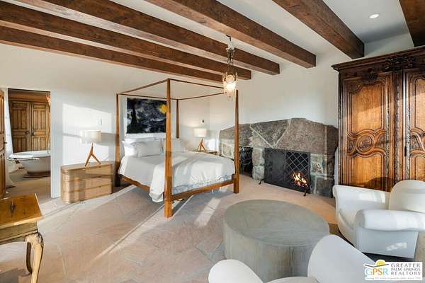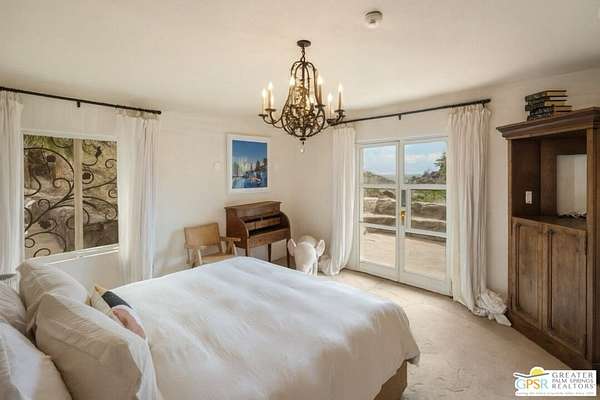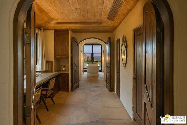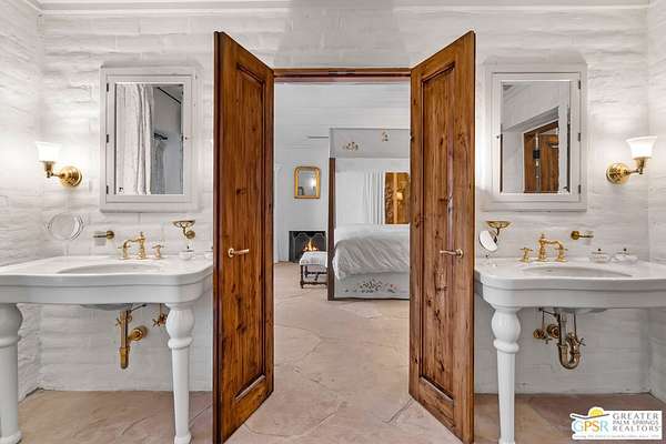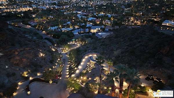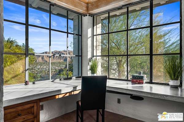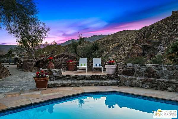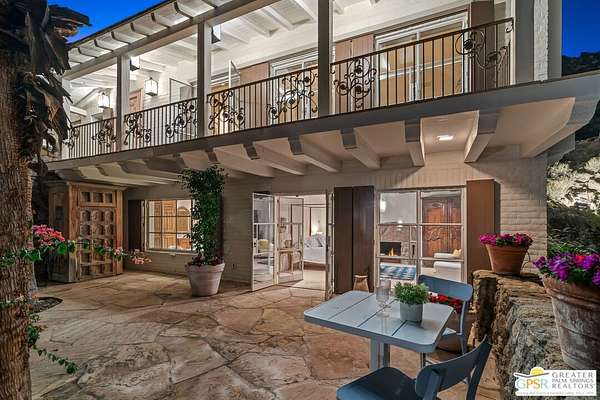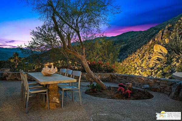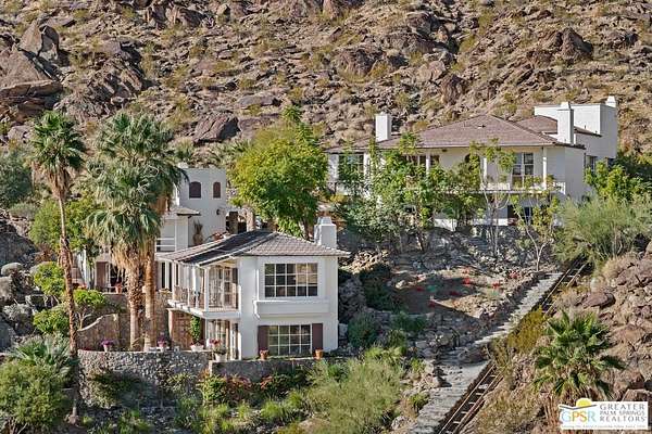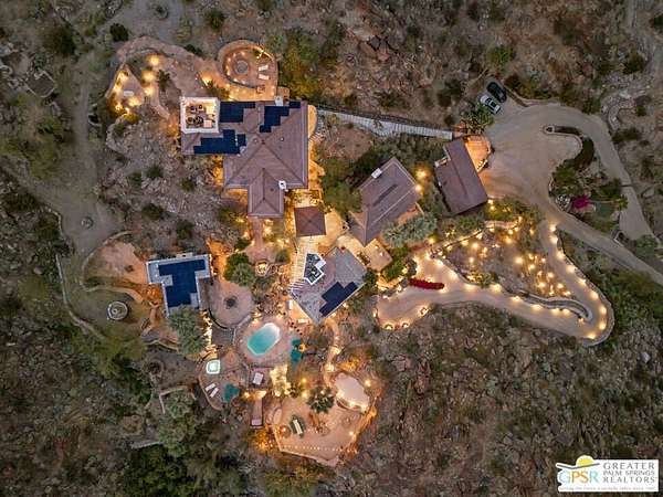 Set across 28 acres of private hillside in Palm Springs' coveted Mesa neighborhood, this extraordinary 7 bedroom, 11 bathroom estate once enjoyed by actress and entrepreneur Suzanne Somers stands as one of the most storied residential compounds in the desert. Just minutes from downtown yet worlds away in privacy and serenity, the property unfolds as a series of terraces, gardens, and architectural retreats woven into the natural landscape of Mount San Jacinto. Originally established in the 1920s and thoughtfully expanded over time, the estate encompasses approximately 7,280 square feet of living space across multiple structures, including the main residence and a collection of guest villas. Meandering pathways, secluded patios, and expansive view terraces create a sense of discovery throughout the property, while sweeping vistas stretch across the Coachella Valley below. Arrival itself is an experience. A custom hillside funicular carries guests through dramatic rock formations as panoramic views reveal themselves with every ascent. Once above, the estate unfolds as a private world designed for both grand entertaining and quiet retreat. The main residence features a dramatic formal dining room with barrel ceiling and fireplace, multiple indoor and outdoor living areas, and a chef-caliber dual kitchen with hidden wine vault built directly into the hillside for natural temperature control. Throughout the estate, antique Balinese mahogany doors, custom stone vessel sinks carved from fossilized materials, and handcrafted architectural details lend warmth and character. Seven bedroom suites including romantic guest quarters, family suites, and the original caretaker's cottage provide both privacy and flexibility. Crowning the estate is a remarkable primary retreat offering balcony views, outdoor soaking tub, dressing area, office, gallery hallway, and lounge spaces that function as a private apartment within the compound. Adjacent to the pool, the iconic Rock House with architectural ties to legendary desert modernist Albert Frey appears to float above the landscape and features its own fireplace and dramatic views. The grounds themselves are equally compelling. A private outdoor amphitheater has hosted performances by renowned artists, while terraces, gardens, and hidden gathering spaces create a setting equally suited for intimate evenings or large-scale events. Scenic hillside trails wind through the property, where encounters with native bighorn sheep are not uncommon. Today the estate remains both a remarkable private sanctuary and a proven luxury vacation rental destination, with parking for more than twenty vehicles and infrastructure designed to accommodate gatherings with ease. Historic, theatrical, and utterly private - this is one of Palm Springs' most legendary hillside estates.