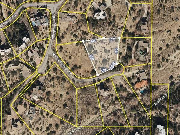 From the 3-way stop at Tramway Blvd & Tramway Road, head east on Tramway Road, north on Juniper Hill Road, stay on Juniper Hill Road until it turns into Spring Creek Road. Keep right on Spring Creek Road, south on Spring Creek Place.
