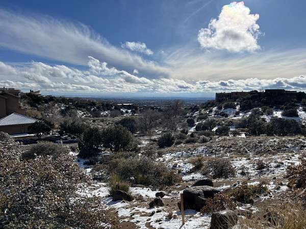 This is one of the more exclusive parcels in Sandia Heights! Located on nearly 1.25 acres, this elevated lot offers a rare opportunity to design your dream home while capturing the breathtaking 360 views! Nestled at the end of a quiet cul-de-sac, just one parcel from open space and the National Forest, you'll enjoy unmatched privacy, peace, and instant access to scenic trails. public utilities are conveniently located at the street. To the west, the sparkling cityscape stretches out before you, while to the east, the dramatic Sandia Foothills rise in full magnificence!The seller is offering custom building plans to a buyer with an acceptable offer. This is truly a lot worth walking--stand here and you'll instantly feel the beauty that abounds.