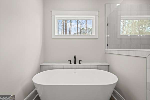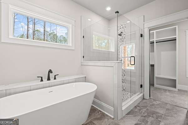 - Double Vanity, Master On Main Level, Separate Shower, Soaking Tub, Split Bedroom Plan, Tile Bath, Tray Ceiling(s), Walk-In Closet(s)