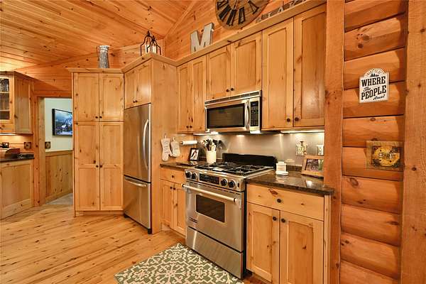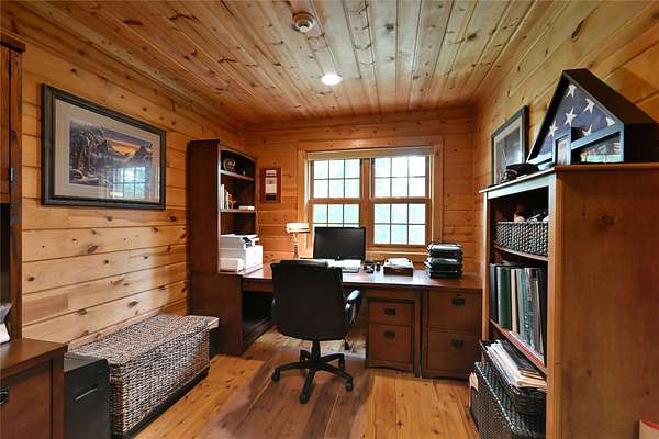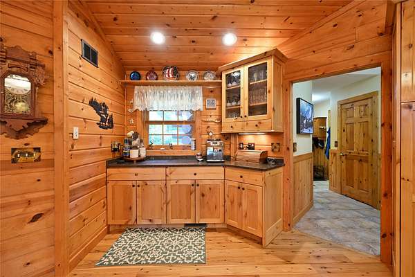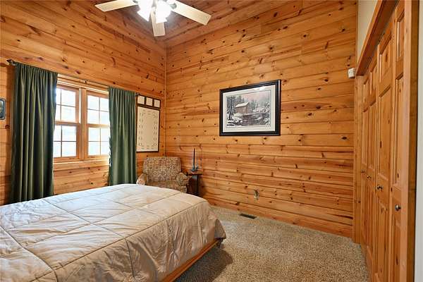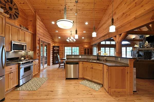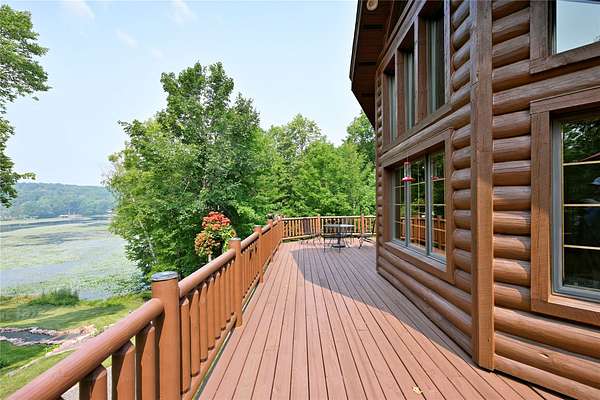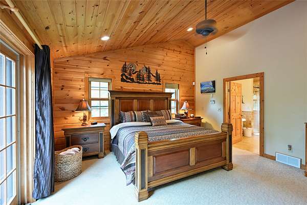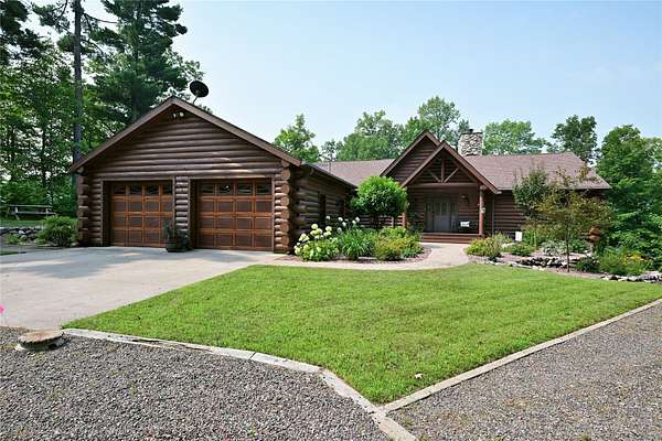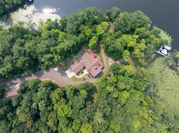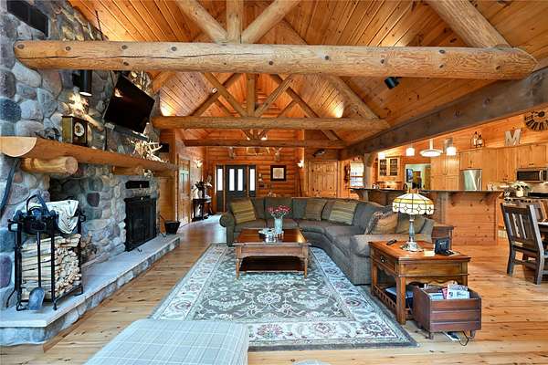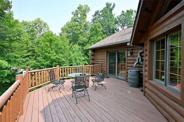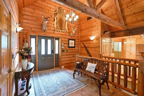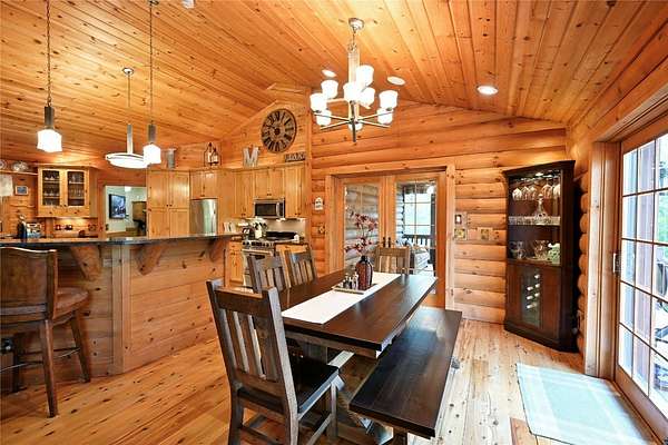 Tucked in the Southern cove of Red Cedar Lake, this 4 bedroom, 3 bath log home on over 12 acres (one of the largest lots on the lake), and 1,076 ft of lake frontage is the dream home you've been waiting for! Enjoy the ambiance right when you step inside with vaulted ceilings, log beam accents, and the gorgeous stone fireplace in the main living area. The refinished Australian Cyprus wood floors flow into the dining area and spacious kitchen, which is highlighted by Silestone counter tops and knotty alder cabinetry. Relax on the 3 Seasons porch or the expansive lakeside deck for the most spectacular sunsets. The master suite boasts luxury with lake view deck access, a large walk-in closet and the master bath with jacuzzi soaking tub and tile shower. On the lower level, entertain in the fully finished rec room with plenty of open space and a wet bar. The two large lower-level bedrooms make the perfect space for guests to relax and enjoy lake life. Walk out to the brick paved patio with wired lighting that follows the incredible new landscaping down to the water's edge. This property had several major exterior updates within the last few years including extensive professional landscaping and wired lighting to lake, house and garage staining (2023), and a new deck railing. There is plenty of storage space throughout the property including the large lower-level storage room, safe room, and the spacious detached garage with unfinished bunkhouse. This property is truly turnkey and ready to enjoy this summer. A property with this much frontage and acreage on gorgeous Red Cedar Lake does not hit the market every day. Don't miss out on this opportunity to own this Northwoods gem! Schedule your showing today!