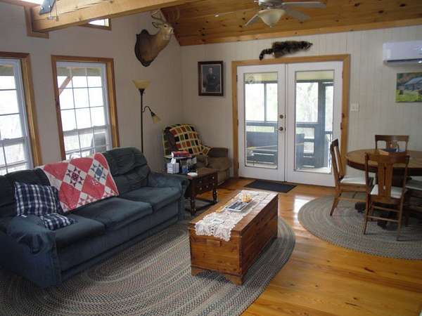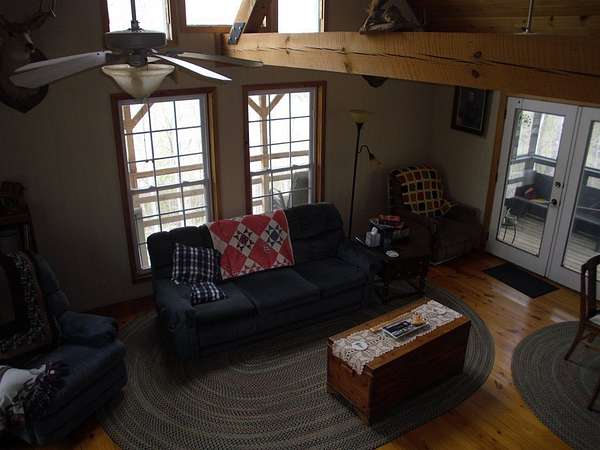 Ready to take a break from it all? Well constructed, fully furnished, cabin style home on 4.77 UNRESTRICTED acres. Beautiful bluff top setting with view of the river below. Cabin features a master bedroom on the main floor with a bonus room in the loft above. Beautiful timber frame construction with hardwood flooring and walls and A frame support beams. Well light with oversized windows and rear patio door. Modern appliances, full size bathroom, split unit HVAC, wrap around porch, metal roof to listen to the rain, enclosed back porch and open back deck atop the bluff overlooking the river below. FIBER OPTIC INTERNET ON SITE. 1 mile from public launch site and 7 miles from East Port Dock for access to beautiful DALE HOLLOW LAKE. Indian artifacts found on site per owner.