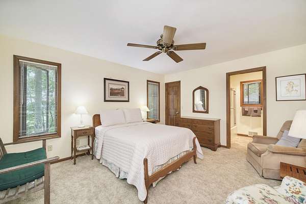 From M-22 turn west on Crescent Beach Road, to steep paved driveway on the left side. At the top of the hill, home is on the right hand side.