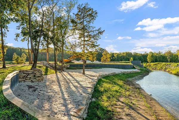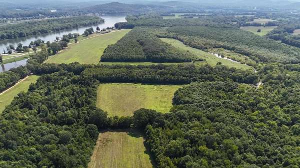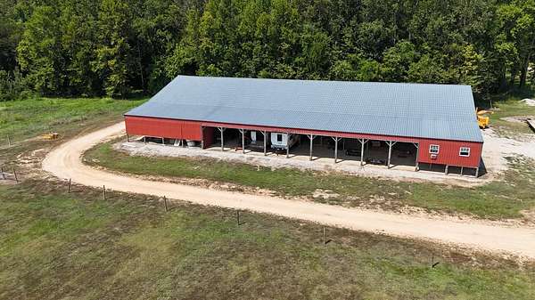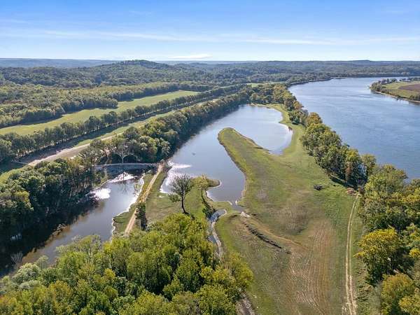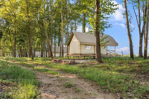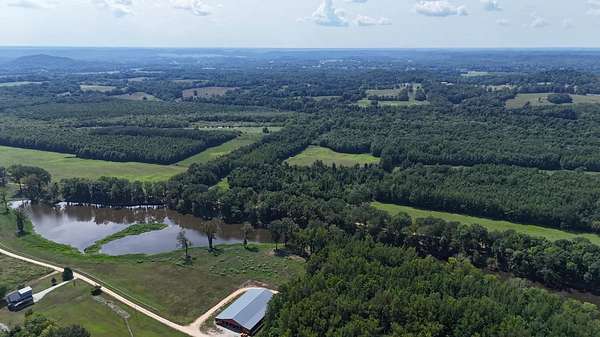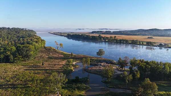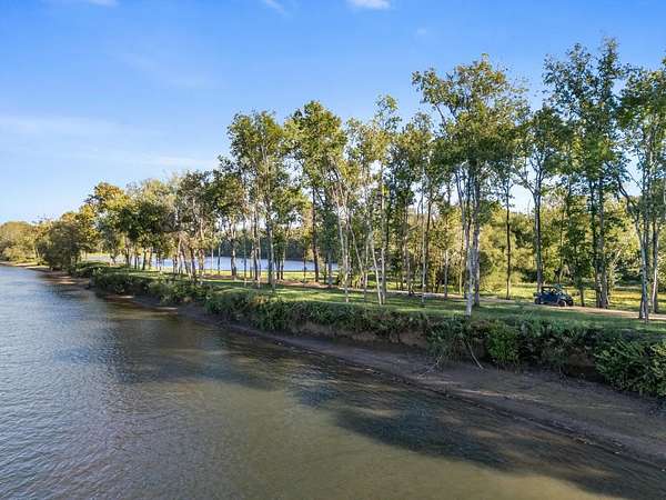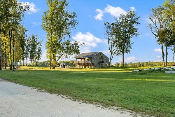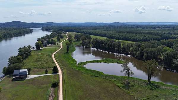 Two inlets from the Tennessee River meander through the bottomland, forming the private lake and flooded cypress slough. Elevated wooded areas offer ideal building sites for a 5+ bedroom estate, compound, or resort overlooking the river. The property also includes two half-acre lots on Scenic Lane as part of the Scenic Lane River housing development, along with a modern tiny home on stilts overlooking the river, inlet, beach area, and soon-to-be-installed private pool. A 148' x 96' pole barn offers ample storage for farm, hunting, or maintenance equipment.