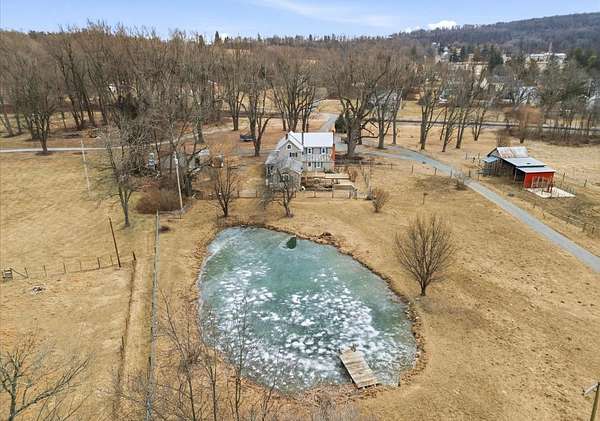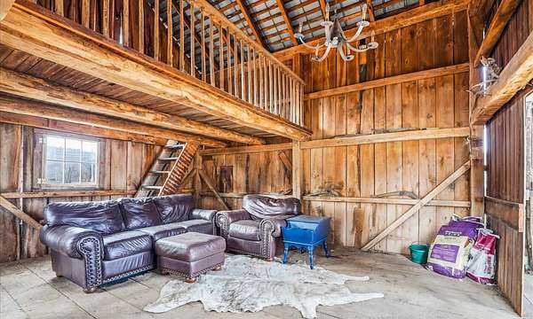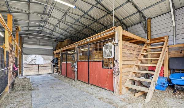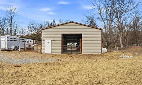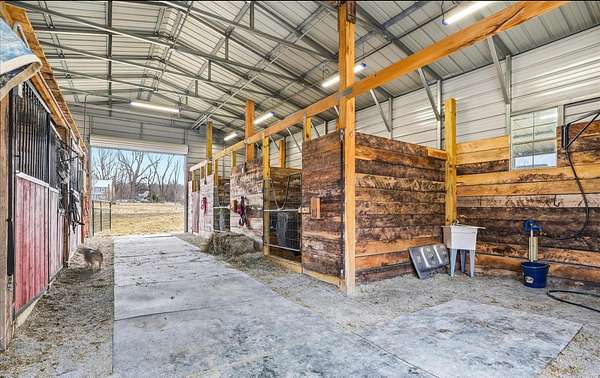 Est $2,850/moA beautiful custom built 20 x 40 pole building with 5 stalls, water, electric, hayloft and feed room. No climb wire fencing through out. Additional 2 run ins and a stocked pond! 8 livestock/ horses allowed and then you just need a nutrient management plan! Spring fed waterers and a driveway to the building for easy loading!