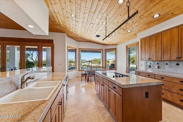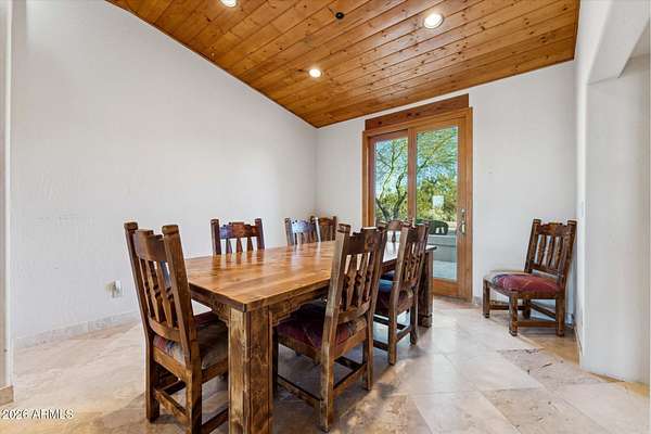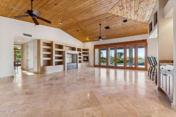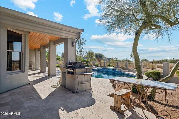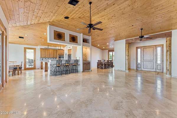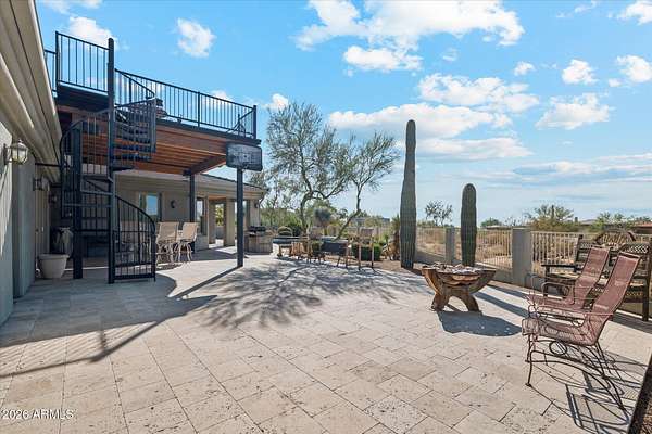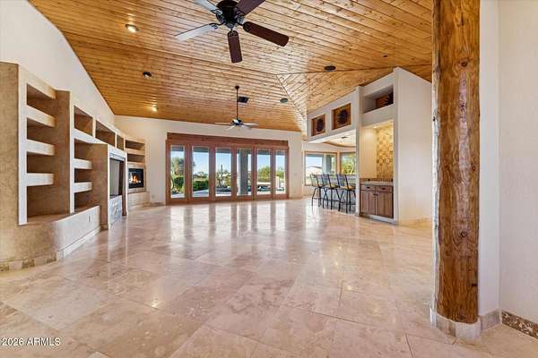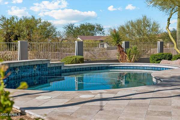 Rare offering in sought after Desert Skyline Estates, a gated enclave of 44 custom home lots in North Scottsdale. Owner Financing available! This custom residence is set on a 1.5 acre lot that would support a separate guest house.The possibilities are endless. As you enter the home you will be welcomed by the soaring vaulted ceilings featuring tongue and groove pine that open to the great room and out to the back where your pool awaits for enjoying the amazing Arizona sunsets. Features include 18-inch diagonal travertine throughout including hand laid borders, new GE Profile kitchen appliances, new roof and Rhino Shield stucco coating. All windows and doors are top quality Anderson. The fourth bedroom includes, wood floors a custom built in desk and cabinets.