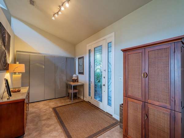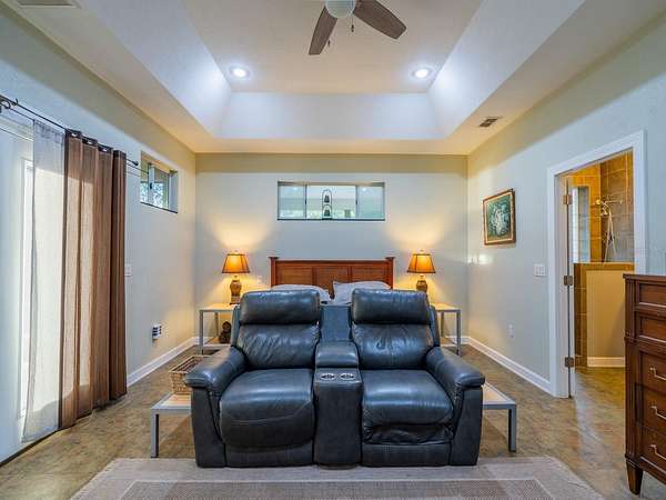 - Ceiling Fans(s), Open Floorplan, Primary Bedroom Main Floor, Solid Surface Counters, Solid Wood Cabinets, Split Bedroom, Thermostat, Tray Ceiling(s), Vaulted Ceiling(s), Walk-In Closet(s), Window Treatments