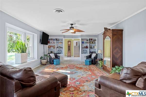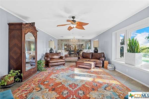 - Bookcases, Breakfast Bar, Ceiling Fans, Chandelier, Crown Molding, Dining Area, Double Vanity, Eat In Kitchen, Entrance Foyer, Game Room, Kitchen Island, Multiple Dining Areas, Multiple Living Areas, Pantry, Separate Formal Dining Room, Separate Shower, Split Bedrooms, Stone Counters, Vanity, Walk In Closets